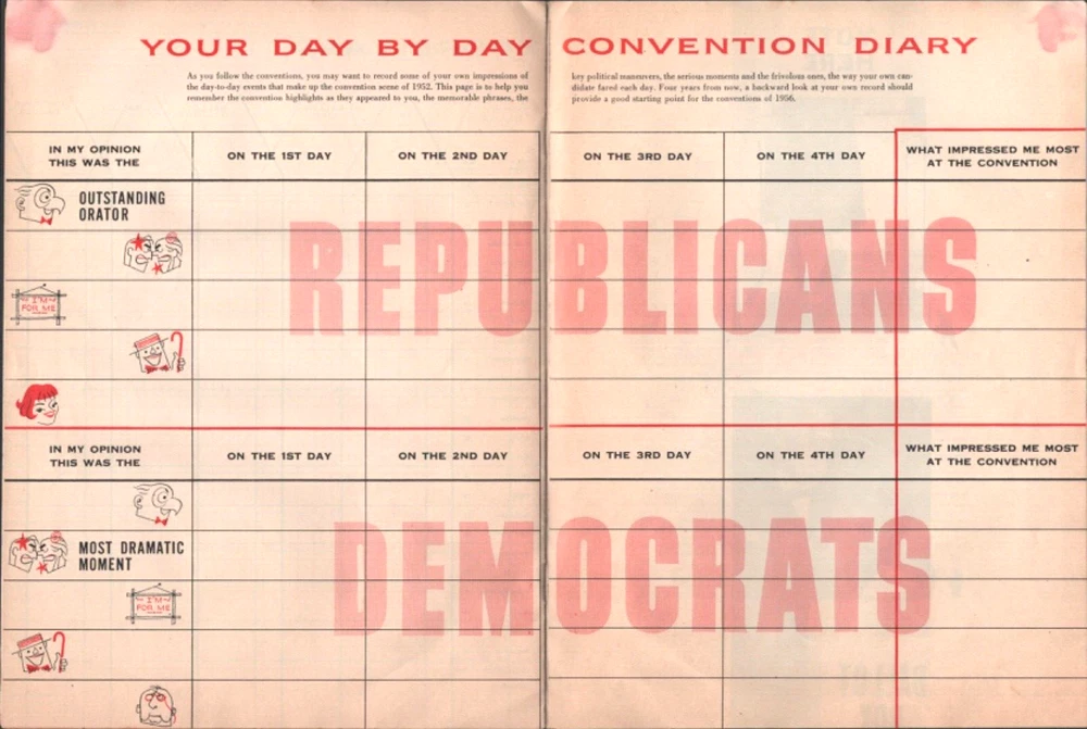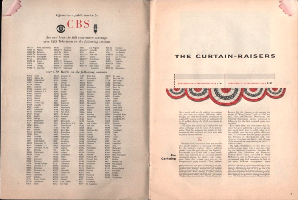 Presidential Election Political Conventions Vintage informational booklet 1952 Published by CBS and Time Magazine Size is 8.25" x 11.25" inches – 24 pages Visit our store for 2,000+ items – Thank You!