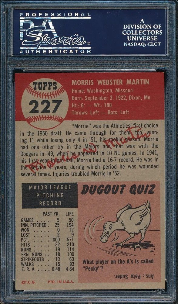 This is a rare 1953 Topps PSA 8 trading card that any collector would be lucky to have in their possession. It's a must-have for any dedicated sports memorabilia collector. This single card is an original from the Post-WWII era and was manufactured by Topps. It's a valuable addition to any collection. Don't miss out on this opportunity to own a piece of sports history. We ship fast!