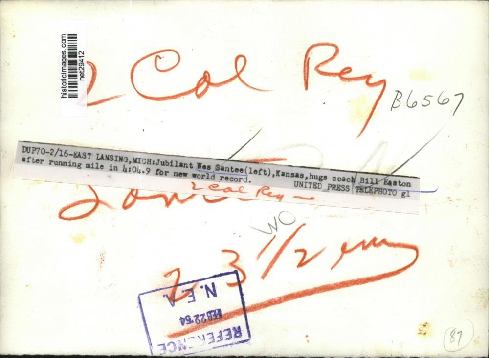 ebay template Note: Please study the images carefully to determine the condition of this vintage photograph, as it may not be in perfect condition. It may contain wrinkles, cracks, and possibly even tears due to its age and how it was handled before it got to us. A scanner may interpret colors and contrast differently than human eyes will, so it is possible that the actual photograph may be slightly darker or lighter in person. This vintage photograph is offered for sale as a collectible item and conveys no transfer of copyright. 1954 Press Photo Runner Wes Santee with coach Bill Easton after record mile run This is an original press photo. Photo measures 9 x 6.5inches. Photo is dated 02-16-1954. PHOTO FRONT PHOTO BACK Historic Images Part Number: net29412 FAQs Q: Can I just download a digital version instead? A: No, we sell only vintage originals and do not make or distribute any copies, including digital ones. Q: Do you combine shipping and invoices? A: Multiple photos won on the same seller ID combine automatically through the eBay checkout process. If you encounter problems with this, send us a message via eBay messaging and we will send you an invoice. Due to eBay limitations, we cannot combine items won on our different seller IDs for a single shipping charge. Q: How quickly do you ship the items once paid? A: We ship within one business day after your payment clears. If you do not receive an "order shipped" email from us by the close of the second business day from submitting payment, please e-mail us via eBay messaging. Q: How do you make sure my photograph arrives safely? A: We package each order between two cross-corrugated pieces of cardboard to ensure that the package is as difficult to bend as possible. We then wrap each order in a plastic sheet to help protect against moisture. We want you to rest assured that we take every precaution to ensure that the photograph you receive will be in the same condition in your care as it was in ours. Q: Will the "Historic Images" watermark be on my photo when I receive it? A: No. This is a digital watermark we use to protect our images. It is not printed on the photo. Q: What are your office hours? A: eBay for us is a business, and a very fun one to be in! We are open M-F 9 to 5 (CST). Therefore, we do not return e-mails and phone calls over the weekend. We observe the following holidays: New Years Day, Memorial Day, Fourth of July, Labor Day, Thanksgiving and the day after Thanksgiving, Christmas Eve and Christmas Day. Q: Where did all these vintage photos come from? A: These original vintage photographs are from various news service and newspaper photo archives from locations around the country including: Boston, Detroit, Tampa, Chicago, Denver, Seattle, New Orleans, Milwaukee, Portland, Spokane, and more. We do not copy or reproduce any photographs -- every item is a unique vintage piece that was housed in a news archive. Q: Can I use this photograph in my book/blog/website? A: The short answer is no. There is no transfer of copyright for republication or reproduction with these photographs when you purchase them, and only photographs taken before 1923 are currently automatically in the public domain. Permission from the copyright holder, which usually can be identified from the back of each photo, must be sought to republish or reproduce the image for any purpose. Q: Do you relist items (in case I miss an auction ending)? A: Auction items that receive no bids are relisted in our store (historicimages-store on eBay) as a fixed-price item and at a higher price than the starting auction price. Q: Do you leave feedback? A: Yes, we always leave feedback for buyers. Our software monitors when our buyers leave us feedback, then notifies us that we can leave feedback for the buyer. Rest assured, if you leave feedback, we will do the same! Check out our family of eBay IDs: historicimages01 Sports Photos historicimages02 Entertainment Photos historicimages03 Americana Photos historicimages04 International & War Photos historicimages05 Transportation Photos historicimages06 Photos of All Subjects historicimages07 Entertainment Photos historicimages08 Newsworthy Photos historicimages09 Entertainment Photos historicimages10 Sports Photos historicimages-store Our largest fixed-price selection historicimages-gallery Hand-picked photos Saturday night auctions About Us Historic Images was formed in September 2009, with a handful of scanners working out of a basement to digitize newspaper photo archives. We have since moved out of the basement, and we can now archive thousands of photos per day. Our company has worked with magazines and newspapers from Detroit, Boston, Denver, Seattle, Tampa, Chicago, and New Orleans, just to name a few. We are constantly adding to our inventory, and have assembled an archive of millions of photos to date. As our company evolved, we began our eBay business, which brings thousands of fresh auctions per week to the world's largest online auction marketplace. Our custom software systems and team of great employees allow us to efficiently scan and sell large photo archives online. At the very core of our company's DNA is a strong commitment to customer satisfaction and strict integrity for our product. Our promise to you is that we will do everything in our power to provide you a great buying experience. Copyright 2009 - Present, Historic Images, Inc. Sell Smarter with Kyozou. Inventory and Ecommerce Management