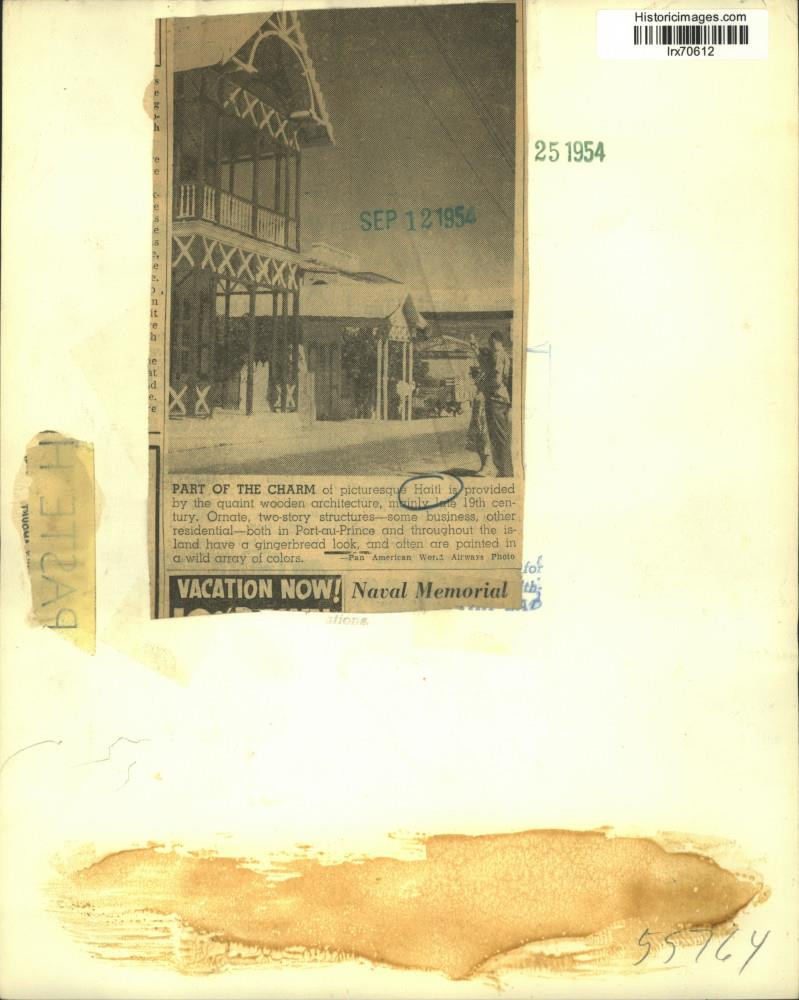 ebay template Note: Please study the images carefully to determine the condition of this vintage photograph, as it may not be in perfect condition. It may contain wrinkles, cracks, and possibly even tears due to its age and how it was handled before it got to us. A scanner may interpret colors and contrast differently than human eyes will, so it is possible that the actual photograph may be slightly darker or lighter in person. This vintage photograph is offered for sale as a collectible item and conveys no transfer of copyright. 1954 Press Photo Two-story building in Port-Au-Prince, Haiti - lrx70612 This is an original press photo. Part of the charm of picturesque Haiti is provided by the quaint wooden architecture, mainly late 19th-century ornate two-story structures - some businesses other residential - both in Port-Au-Prince and throughout the island have a gingerbread look and often are painted in a wild array of colors. Photo measures 8.25 x 10.25 inches. Photo is dated 09-12-1954. PHOTO FRONT PHOTO BACK Historic Images Part Number: lrx70612 FAQs Q: Can I just download a digital version instead? A: No, we sell only vintage originals and do not make or distribute any copies, including digital ones. Q: Do you combine shipping and invoices? A: Multiple photos won on the same seller ID combine automatically through the eBay checkout process. If you encounter problems with this, send us a message via eBay messaging and we will send you an invoice. Due to eBay limitations, we cannot combine items won on our different seller IDs for a single shipping charge. Q: How quickly do you ship the items once paid? A: We ship within one business day after your payment clears. If you do not receive an "order shipped" email from us by the close of the second business day from submitting payment, please e-mail us via eBay messaging. Q: How do you make sure my photograph arrives safely? A: We package each order between two cross-corrugated pieces of cardboard to ensure that the package is as difficult to bend as possible. We then wrap each order in a plastic sheet to help protect against moisture. We want you to rest assured that we take every precaution to ensure that the photograph you receive will be in the same condition in your care as it was in ours. Q: Will the "Historic Images" watermark be on my photo when I receive it? A: No. This is a digital watermark we use to protect our images. It is not printed on the photo. Q: What are your office hours? A: eBay for us is a business, and a very fun one to be in! We are open M-F 9 to 5 (CST). Therefore, we do not return e-mails and phone calls over the weekend. We observe the following holidays: New Years Day, Memorial Day, Fourth of July, Labor Day, Thanksgiving and the day after Thanksgiving, Christmas Eve and Christmas Day. Q: Where did all these vintage photos come from? A: These original vintage photographs are from various news service and newspaper photo archives from locations around the country including: Boston, Detroit, Tampa, Chicago, Denver, Seattle, New Orleans, Milwaukee, Portland, Spokane, and more. We do not copy or reproduce any photographs -- every item is a unique vintage piece that was housed in a news archive. Q: Can I use this photograph in my book/blog/website? A: The short answer is no. There is no transfer of copyright for republication or reproduction with these photographs when you purchase them, and only photographs taken before 1923 are currently automatically in the public domain. Permission from the copyright holder, which usually can be identified from the back of each photo, must be sought to republish or reproduce the image for any purpose. Q: Do you relist items (in case I miss an auction ending)? A: Auction items that receive no bids are relisted in our store (historicimages-store on eBay) as a fixed-price item and at a higher price than the starting auction price. Q: Do you leave feedback? A: Yes, we always leave feedback for buyers. Our software monitors when our buyers leave us feedback, then notifies us that we can leave feedback for the buyer. Rest assured, if you leave feedback, we will do the same! Check out our family of eBay IDs: historicimages01 Sports Photos historicimages02 Entertainment Photos historicimages03 Americana Photos historicimages04 International & War Photos historicimages05 Transportation Photos historicimages06 Photos of All Subjects historicimages07 Entertainment Photos historicimages08 Newsworthy Photos historicimages09 Entertainment Photos historicimages10 Sports Photos historicimages-store Our largest fixed-price selection historicimages-gallery Hand-picked photos Saturday night auctions About Us Historic Images was formed in September 2009, with a handful of scanners working out of a basement to digitize newspaper photo archives. We have since moved out of the basement, and we can now archive thousands of photos per day. Our company has worked with magazines and newspapers from Detroit, Boston, Denver, Seattle, Tampa, Chicago, and New Orleans, just to name a few. We are constantly adding to our inventory, and have assembled an archive of millions of photos to date. As our company evolved, we began our eBay business, which brings thousands of fresh auctions per week to the world's largest online auction marketplace. Our custom software systems and team of great employees allow us to efficiently scan and sell large photo archives online. At the very core of our company's DNA is a strong commitment to customer satisfaction and strict integrity for our product. Our promise to you is that we will do everything in our power to provide you a great buying experience. Copyright 2009 - Present, Historic Images, Inc. Sell Smarter with Kyozou. Inventory and Ecommerce Management