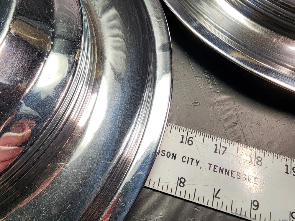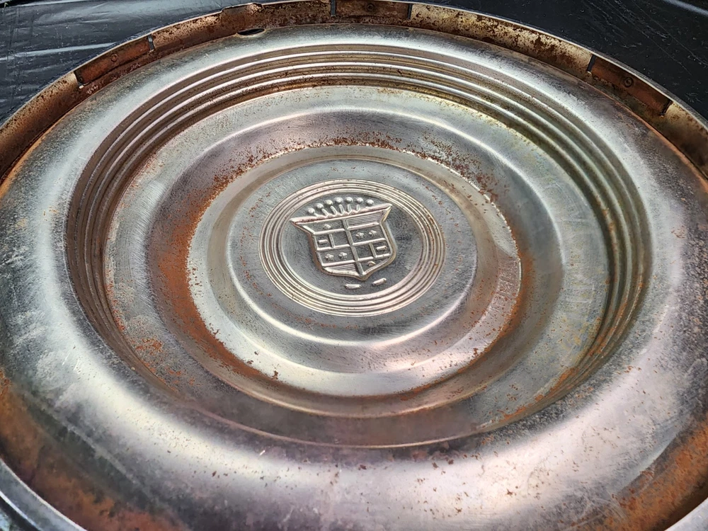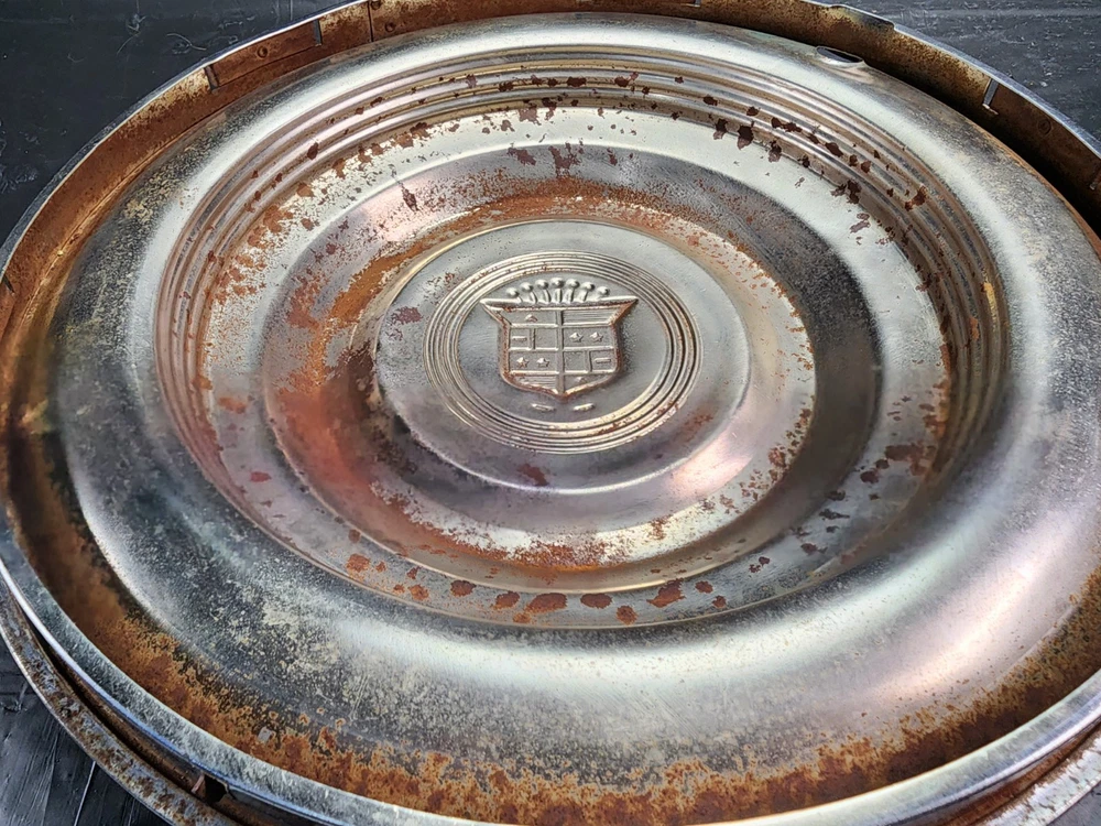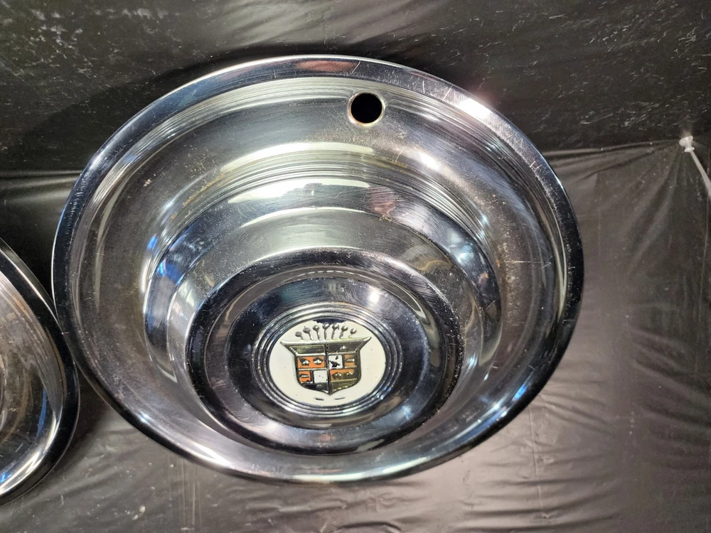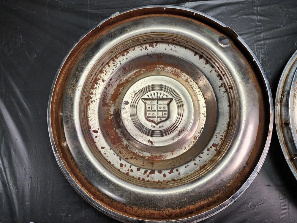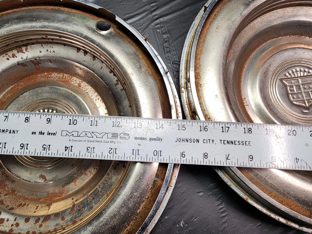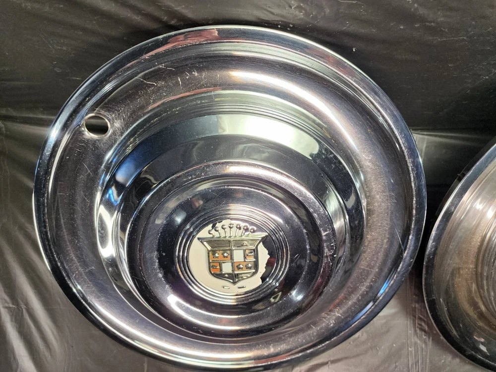 Vintage 40s 50s 60s 70s hub caps. 1954 1955 Vintage pair of Namsco National replacement hubcaps for Cadillac from the 50s. pair of 2 hubcaps wheel covers center caps. in good condition considering their age and being used. These are Used hubcaps off of old classic cars that were driven on the road and used, so please see photos for complete condition as they are not all perfect. Most have some fading, dings, scuffing, mineral staining, etc could use a good polishing to bring em back to full shine, but otherwise in beautiful condition. Check out more of my ebay page as we are going through and listing a ton of classic / vintage hubcaps from the the 20's 30's 40's 50's 60's 70's 80's 90's 00's and up. all different makes and models such as Ford Chevy Chevrolet GM Cadillac GMC camero nova Chevelle Nomad Bel Air Mercury Corvette Mustang Oldsmobile Pontiac Lincoln Dodge Plymouth Buick Chrysler Mopar Fairlane Volkswagen Cheiftain Challanger Charger 1500 4x4 muscle car hot rod rat rod Cars and Trucks 15in 14in 16in and so much more from full sets to sets of 2 and singles, you name it check us out!