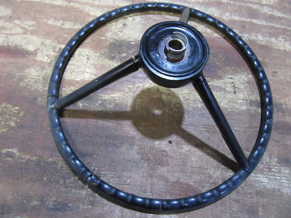 Description: This is the original steering wheel removed from a 1956 Ford Mainline car. In need of restoration and has some cracks in it. Needs to be restored. Please email with any questions before bidding. Please contact us with any issues before starting a claim through Ebay. We will do our best to resolve the problem. BUYER'S NOTE All the items we list the exact year and model the part was removed from. We make mistakes and sometimes the parts may have been changed over the years and could have come from a different year or model. We try to list the years and models as best we can with the information we have for interchange between models. But for your own sake if the part does not look correct to your application research before bidding. Please do not wait till you receive the part and come to the conclusion it is the wrong part and expect to be reinbursed for shipping costs. We also offer for added fees your part can be blasted or powder coated and ready to install once you receive it. Email for a price quote. CHECK OUT OUR EBAY STORE FOR MORE GREAT DEALS ON CLASSIC USED PARTS! SHIPPING INSTRUCTIONS: FOR A ACCURATE QUOTE THE BUYER'S ZIP CODE MUST BE ENTERED IN THE SHIPPING DETAILS. WARRANTY INFORMATION: NO WARRANTY IS WRITTEN OR IMPLIED ON ANY USED PARTS WE SELL. ALL PARTS ARE SOLD AS IS WITH NO GUARANTEES WRITTEN OR IMPLIED. Please note that some items we have may not be the same as the ones pictured. Due to having duplicates. We try and post a picture of the worst one we have in stock, so that the one you receive is in better shape. But sometimes the worst one is what is left.
