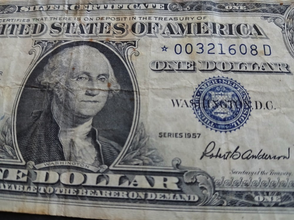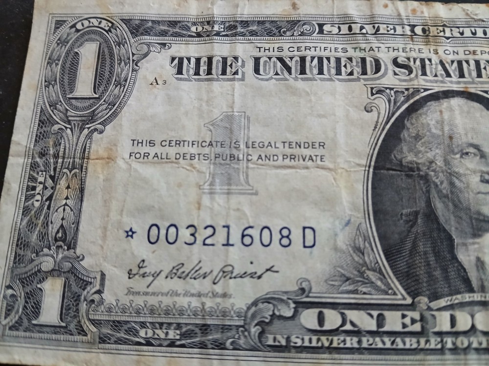 The product is a 1957 $1 star note silver certificate, which is a type of paper money issued by the Federal Reserve in the United States. This particular note features a distinctive star symbol next to the serial number, indicating it was a replacement for a damaged or misprinted bill. With an ungraded grade and uncertified certification, this silver certificate is a collectible piece of currency from 1957 in good condition, making it a valuable addition to any numismatic collection or for those interested in historical paper money. make an offer serious buyers only thank you