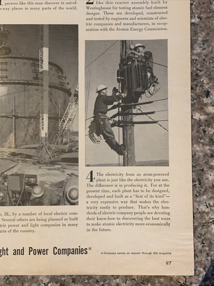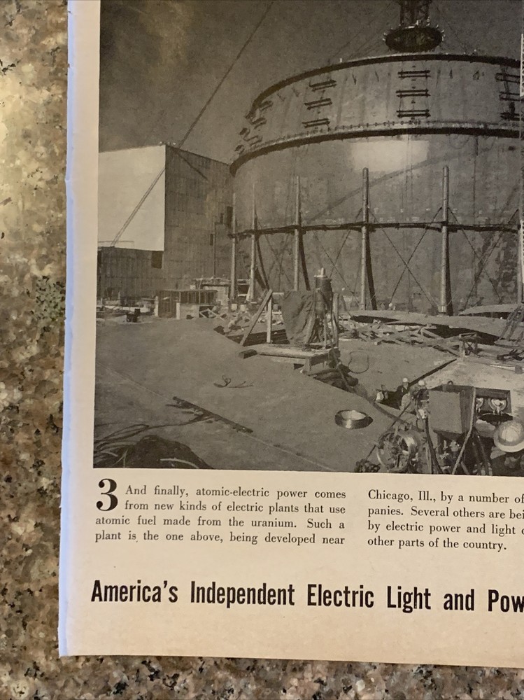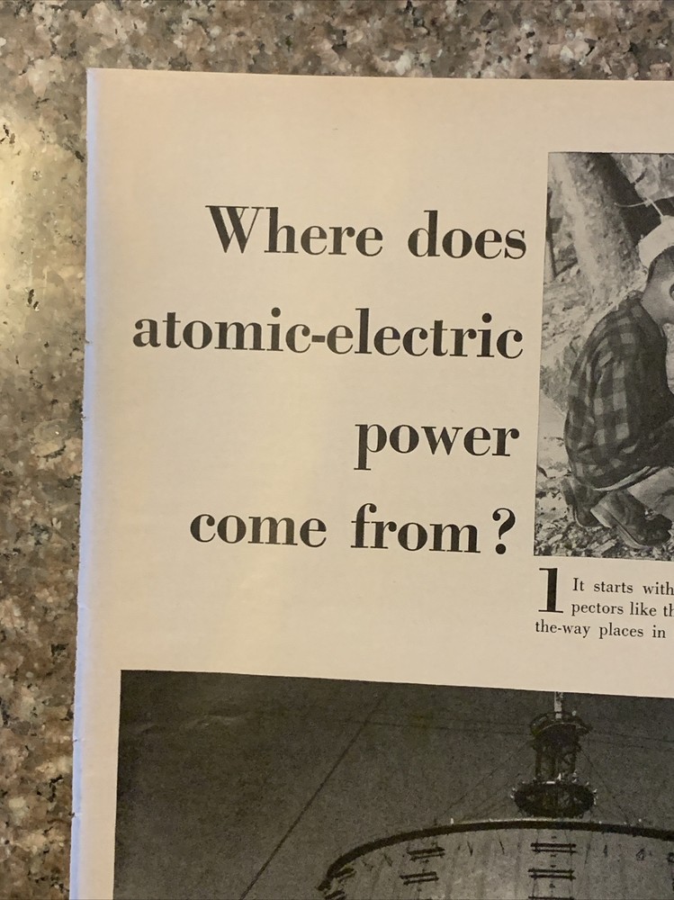 This vintage 1958 print ad features America's Independent Electric Light & Power Companies and answers the question: Where does Atomic-Electric Power come from. The black and white ad was created in the 1950s and is a great piece of advertising memorabilia. The ad was produced in the United States and would make a wonderful addition to any collection of vintage advertising print ads. Original approximate 10”x14” vintage magazine print ad.