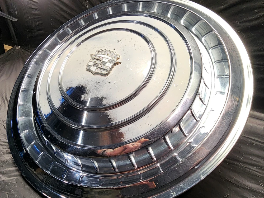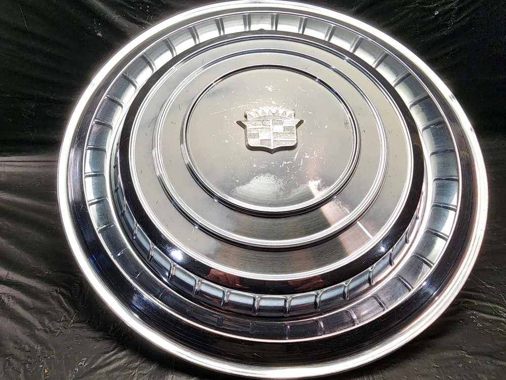 Vintage 40s 50s 60s 70s hub caps. 1960 Cadillac single Original OEM Factory OE hubcaps wheel covers center caps. in good condition considering their age and being used. These are Used hubcaps off of old classic cars that were driven on the road and used, so please see photos for complete condition as they are not all perfect. Most have some fading, dings, scuffing, mineral staining, etc could use a good polishing to bring em back to full shine, but otherwise in beautiful condition. Check out more of my ebay page as we are going through and listing a ton of classic / vintage hubcaps from the the 20's 30's 40's 50's 60's 70's 80's 90's 00's and up. all different makes and models such as Ford Chevy Chevrolet GM Cadillac GMC camero nova Chevelle Nomad Bel Air Mercury Corvette Mustang Oldsmobile Pontiac Lincoln Dodge Plymouth Buick Chrysler Mopar Fairlane Volkswagen Cheiftain Challanger Charger 1500 4x4 muscle car hot rod rat rod Cars and Trucks 15in 14in 16in and so much more from full sets to sets of 2 and singles, you name it check us out!