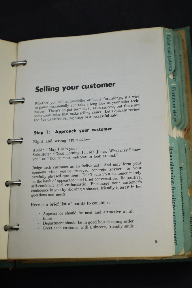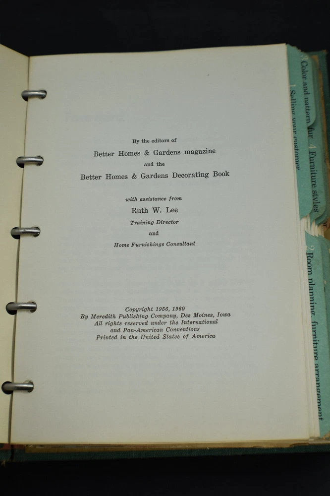 1960 Better Homes & Garden Home Furnishings Sales Program and Decorating Book In five ring binder See photos for condition details. Some marks/smudges on binder, shelf wear Due to high loss in shipping to certain countries, insurance is required for shipping to a location that does not provide tracking PLEASE READ THE RETURN POLICY BELOW: RETURNS are seldom made, I have been on for many years and Buyers satisfaction is important to me. This is why I provide good description, detailed photos and request questions from you to help you make the right choice to eliminate returns. Please read the description and view detailed photos. Please ask questions if you have particular needs or need clarification. Communication is important, this helps eliminate returns and any confusion or buyers with particular needs, so please do not assume I know what you are looking for unless you tell me. NOTE: If purchasing multiple items, please do so by using the Ebay Shopping Cart, then select "Request Total for Seller" for the corrected shipping on a new invoice. Do not pay for the items before receiving this corrected invoice.