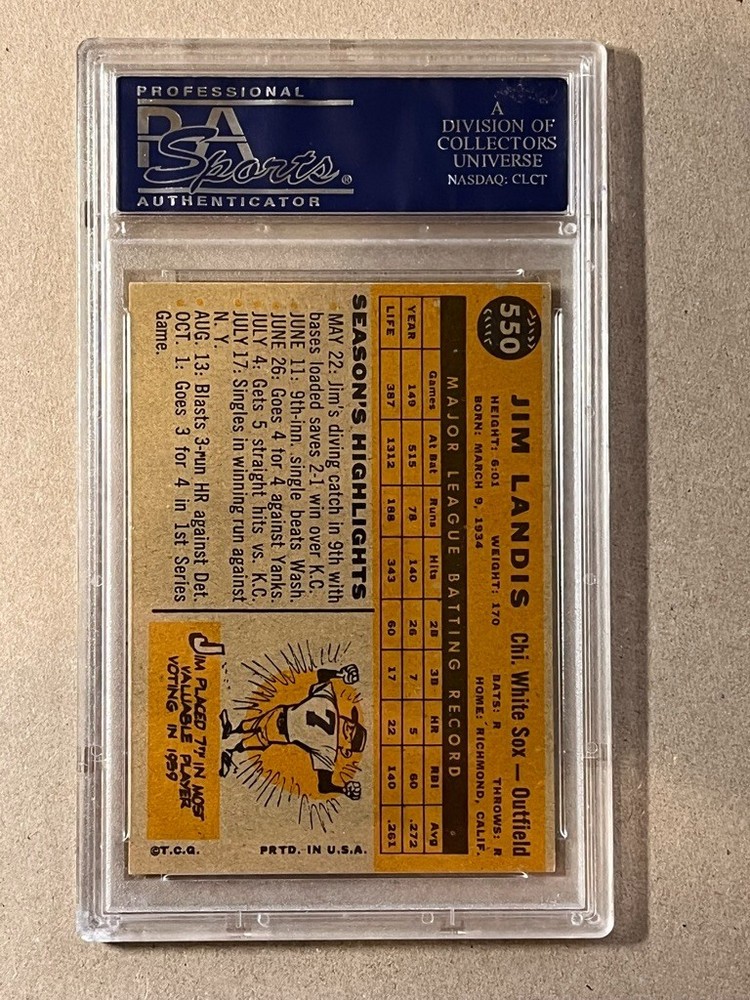 Capture a piece of baseball history with the 1960 Topps #550 Jim Landis card, showcasing the Chicago White Sox star in his prime. This vintage sports trading card is a must-have for collectors and fans alike, featuring the esteemed Major League Baseball player who left an indelible mark on the game. Proudly manufactured by Topps, the card is part of the iconic 1960 Topps set and is a testament to Landis's athletic prowess. A standout addition to any collection, this card is a celebration of Jim Landis's legacy and a cherished keepsake for those who appreciate the rich history of baseball.