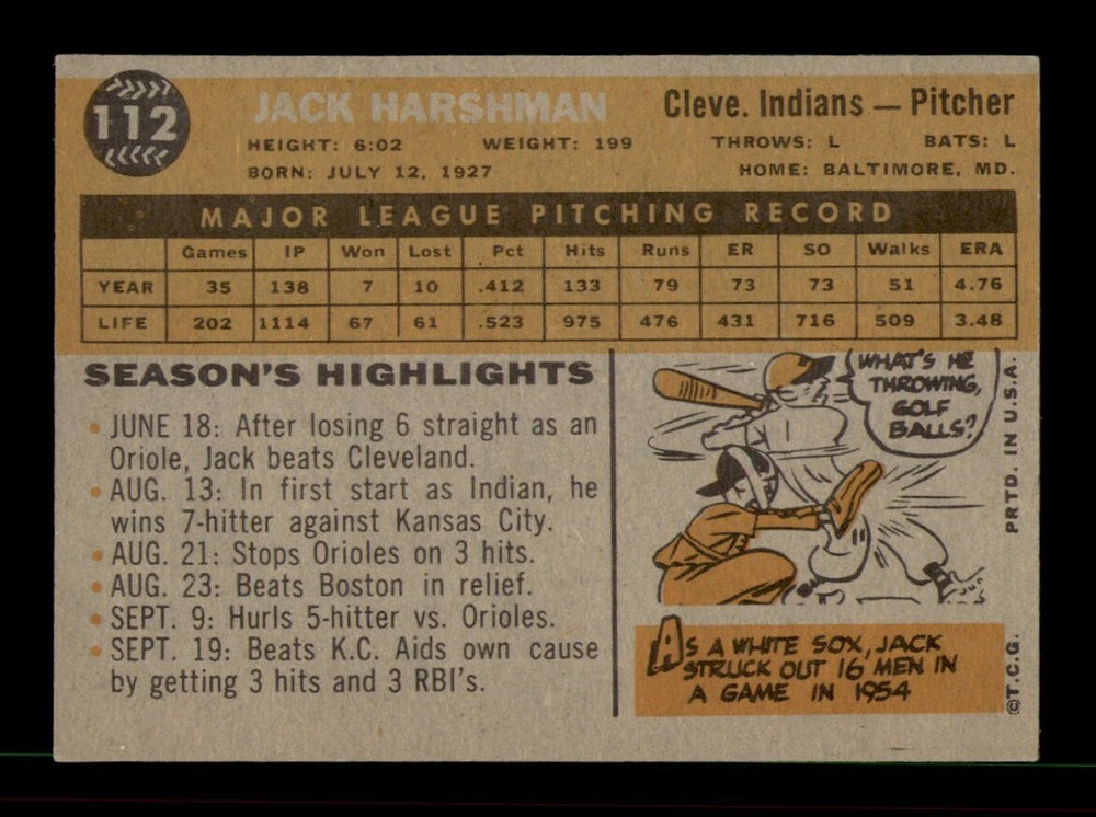 1960 Topps #112 Jack Harsman EX-MT Baseball Card – OBGcards