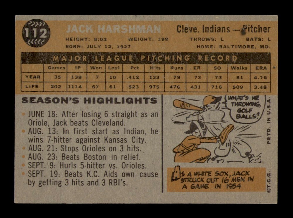 1960 Topps #112 Jack Harsman EX-MT Condition OBGcards Baseball Vintage