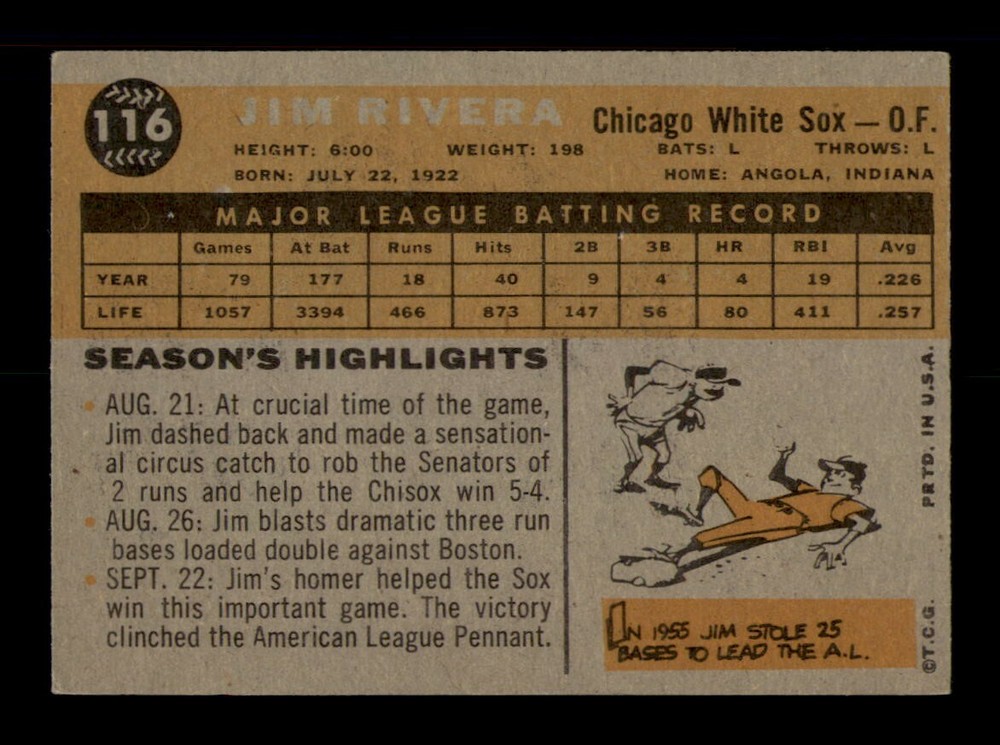 1960 Topps #116 Jim Rivera EX-MINT Baseball Card – OBGcards
