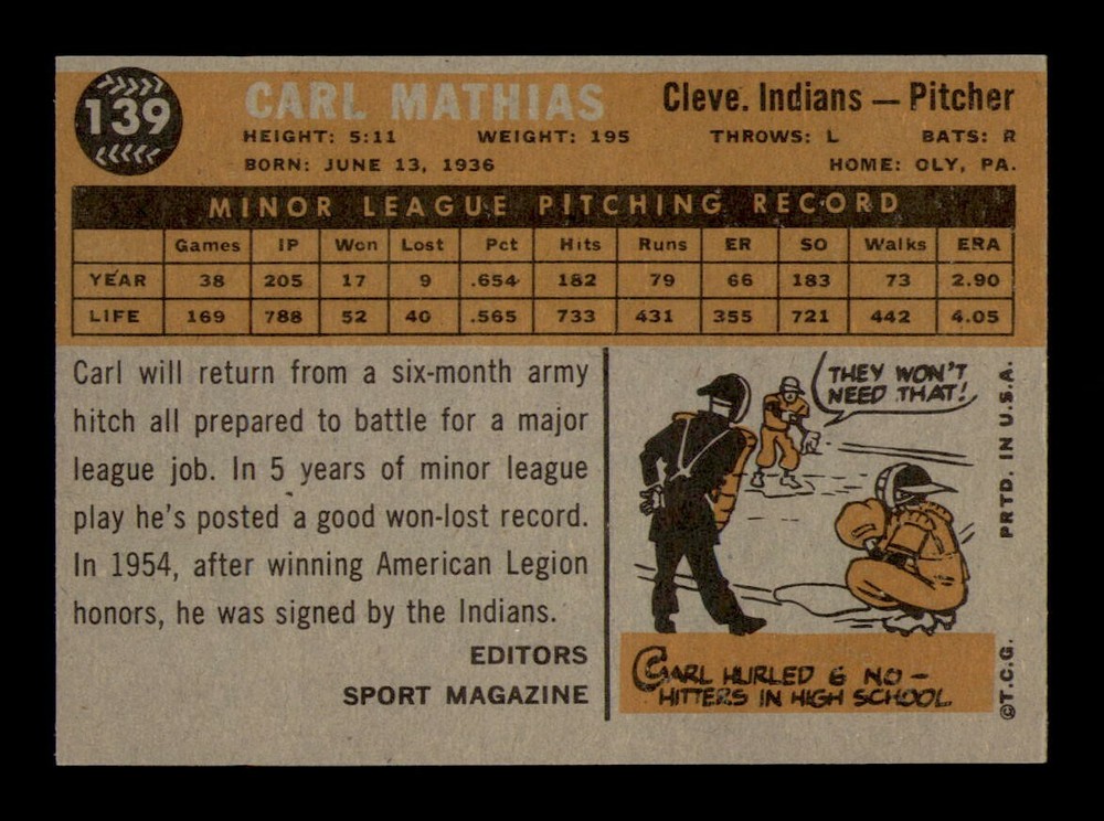 Player: Carl Mathias Card Manufacturer: Topps Season: 1960 Graded: No Year: 1960 Series: Varies Sport: Baseball Original/Reprint: Original