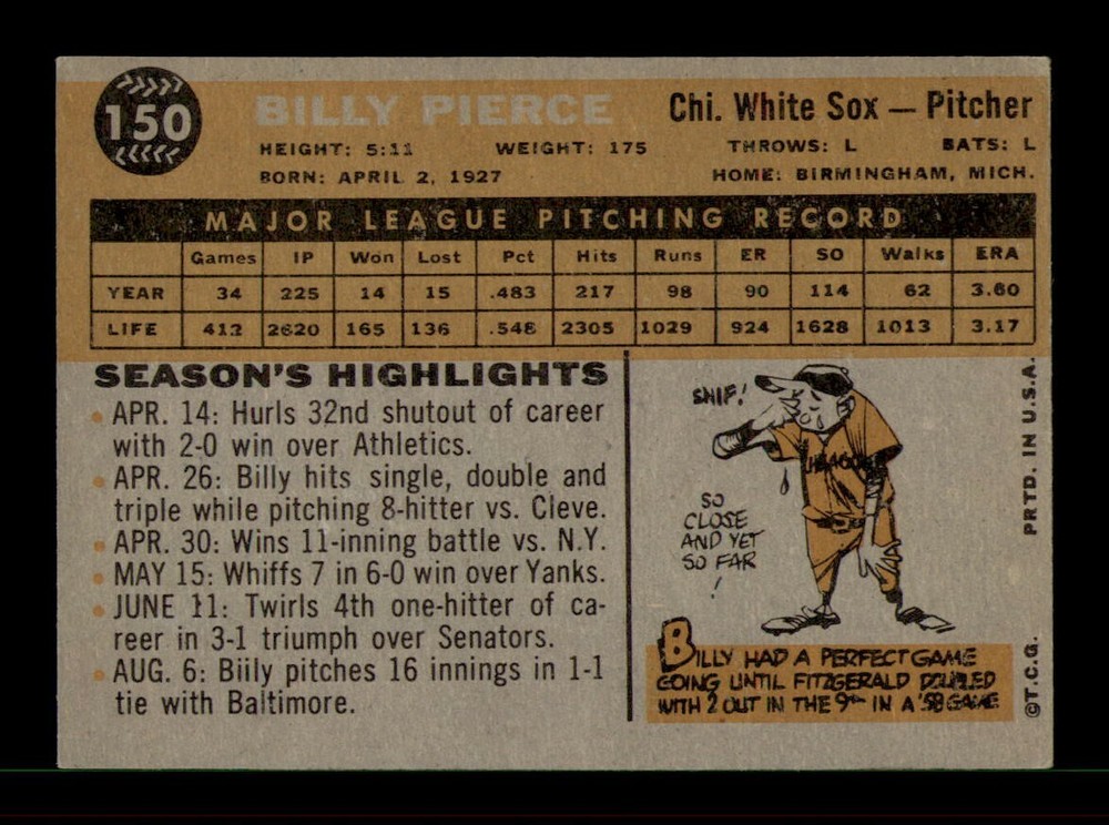1960 Topps #150 Billy Pierce EX-MT Baseball Card OBGcards
