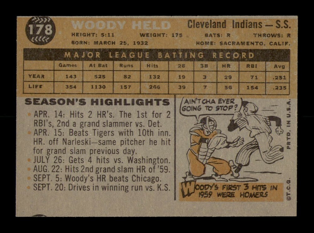 Absolutely love this 1960 Topps Woodie Held card—EX-MINT condition, just as described! The scan matches perfectly, and the card is a true vintage gem. Free shipping and fast delivery make it even better. Super happy with this purchase, highly recommend OBGcards for their quality and service!