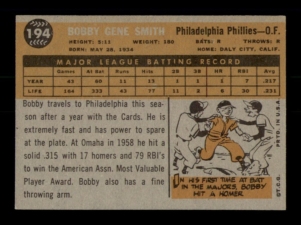 $ 2.111960 Topps #288 Bob Mabe EX-MINT Baseball Card OBGcards