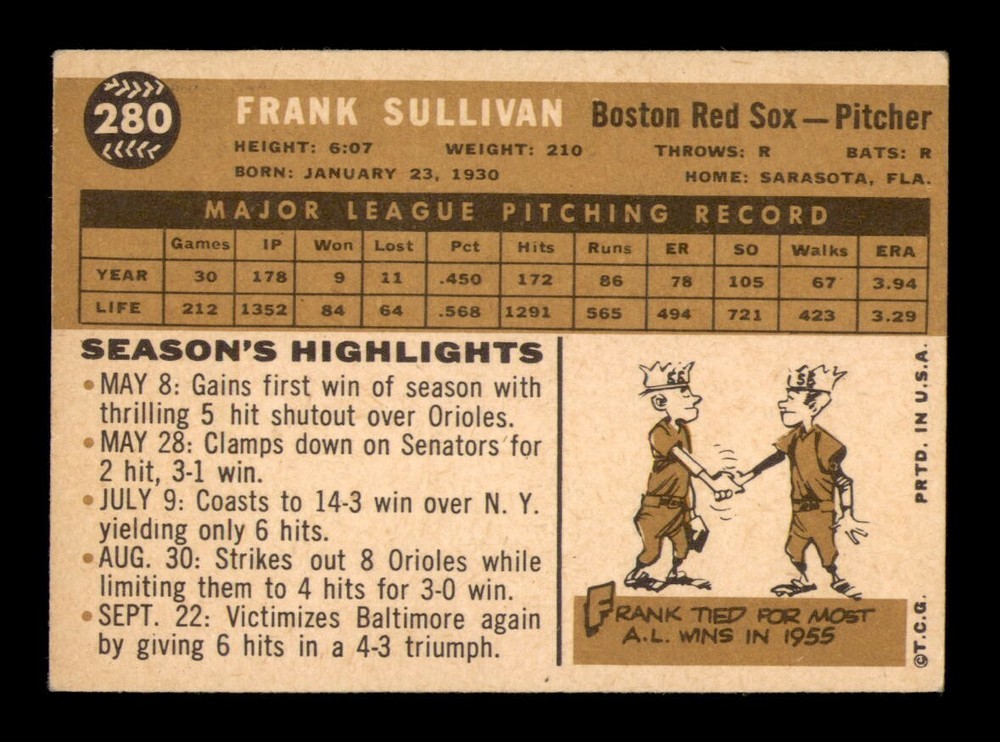 Sport: Baseball Year: 1960 Card Manufacturer: Topps Season: 1960 Original/Reprint: Original Player: Frank Sullivan Series: Varies Graded: No