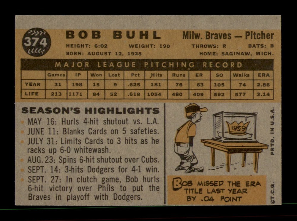 Absolutely thrilled with this Bob Buhl card! The condition is fantastic, just as described, and the scan was spot-on. Smooth transaction, fast free shipping, and a great return policy. A perfect addition to my collection!