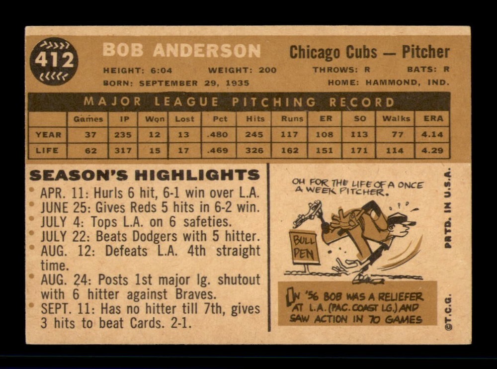 Player: Bob Anderson Season: 1960 Card Manufacturer: Topps Original/Reprint: Original Sport: Baseball Year: 1960 Graded: No Series: Varies