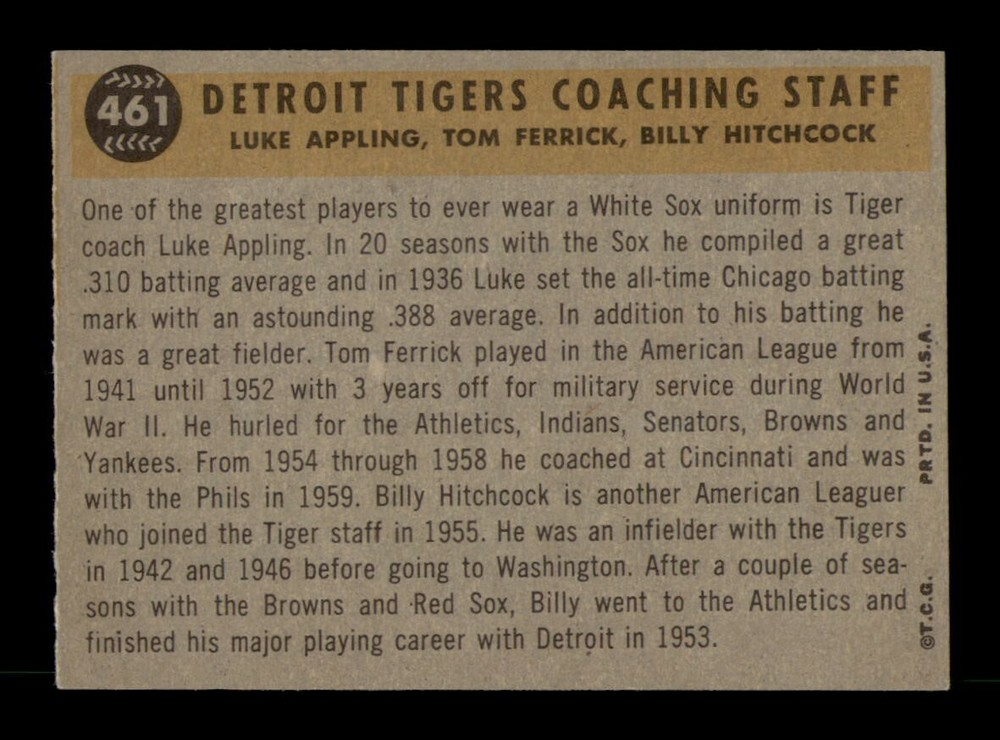 1960 Topps #461 Detroit Tigers Coaches NM OBGcards Vintage Baseball