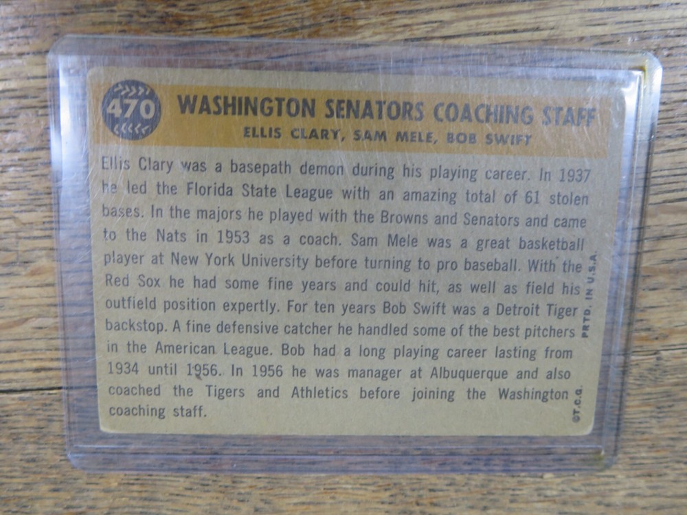 1960 Topps #470 Washington Senators Coaching Staff Baseball Card - Great Condition