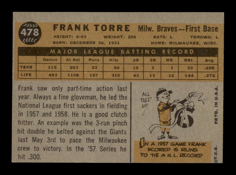 1960 Topps #478 Frank Torre NM Baseball Card Break OBGcards