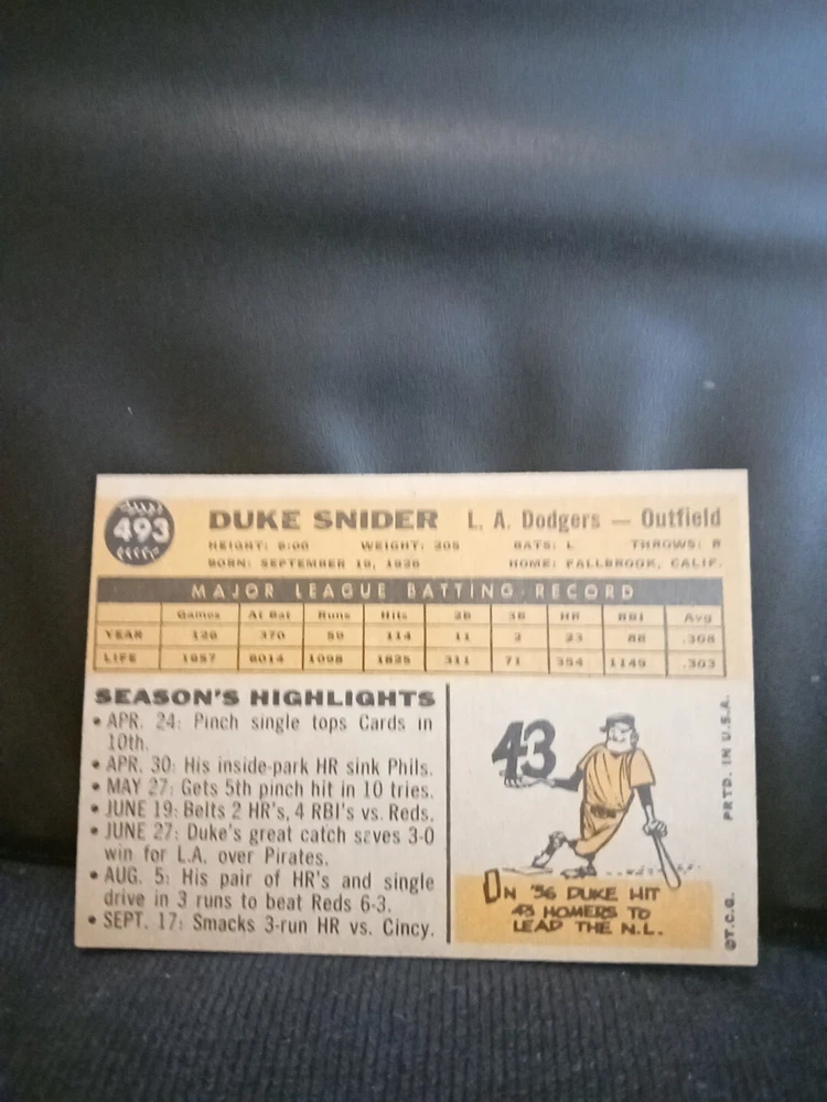 1960 Topps Duke Snider Beautiful card Excellent condition Extremely clean See scan and grade for yourself