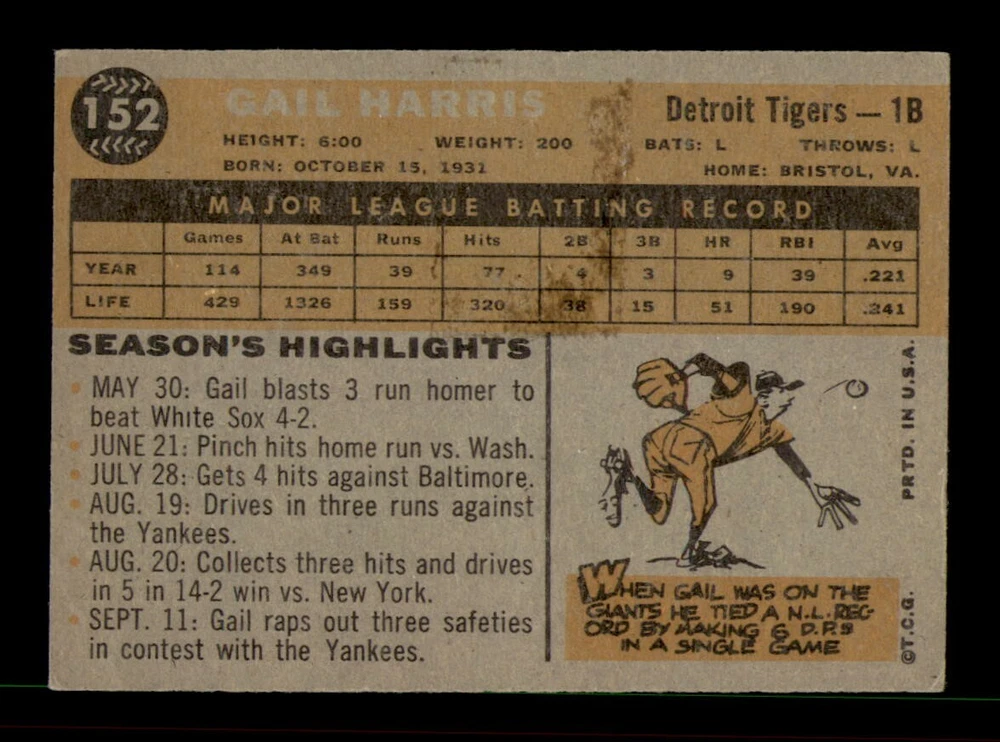 Card Manufacturer: Topps Graded: No Year: 1960 Season: 1960 Original/Reprint: Original Series: Varies Player: Gail Harris Sport: Baseball