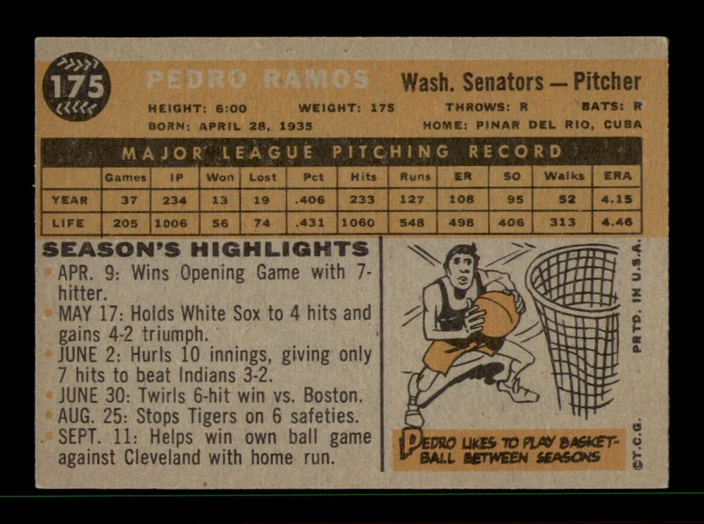 1960 Topps Set Break #175 Pedro Ramos EX-MINT *OBGcards*