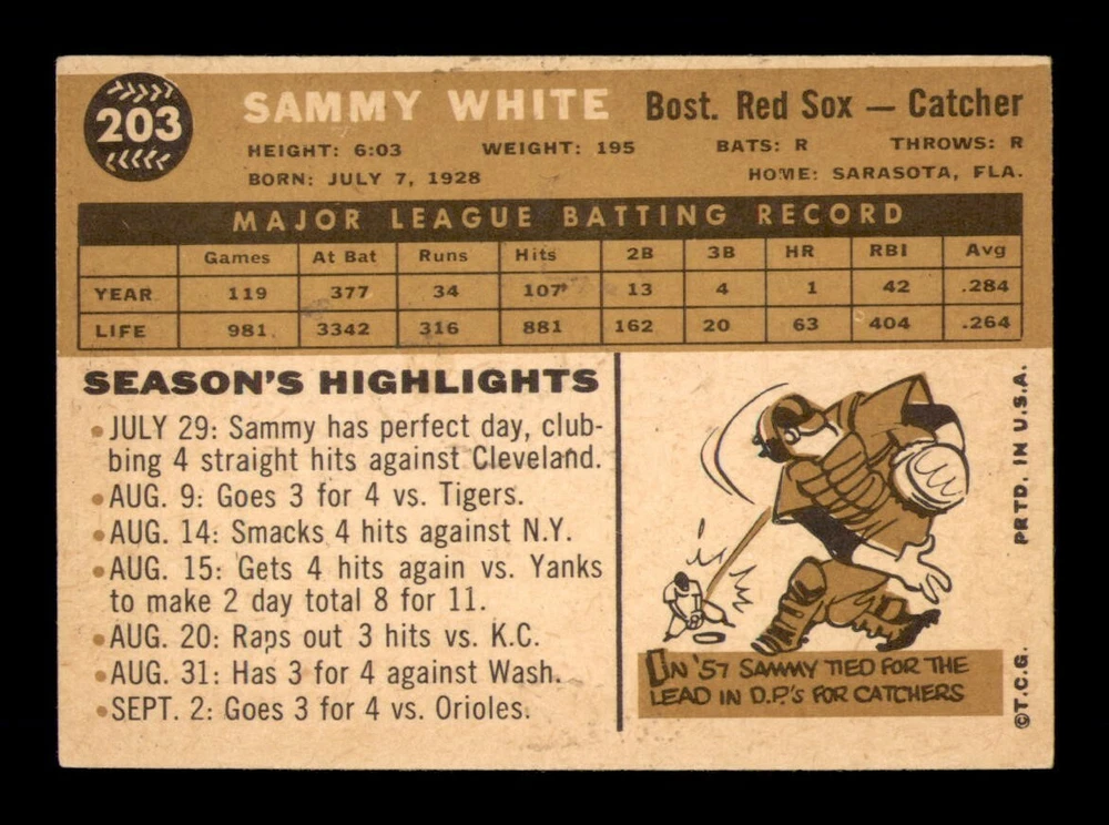 Estado del artículo: Ungraded Series: Varies Card Manufacturer: Topps Player: Sammy White Sport: Baseball Year: 1960 Season: 1960 Team: Varies Graded: No Card Number: 203 Original/Reprint: Original