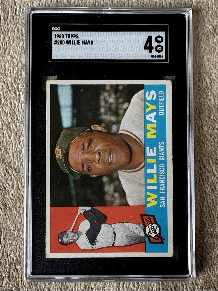 1960 Topps Willie Mays #200 card, graded SGC 4. Really awesome looking card of longtime San Francisco Giants Hall of Famer. Card is very nicely centered and a very nice graded vintage card of this Hall of Famer. An excellent addition to any baseball card collection. Please check out the photos and don’t hesitate to message with any questions. Will combine shipping whenever possible. Card shipped USPS ground advantage within 1-2 days of purchase.