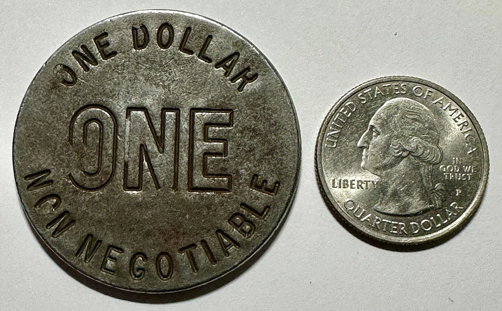 1960’s $1 Dollar Non Negotiable Las Vegas Casino Token - Type 3; Thin 1 - Steel