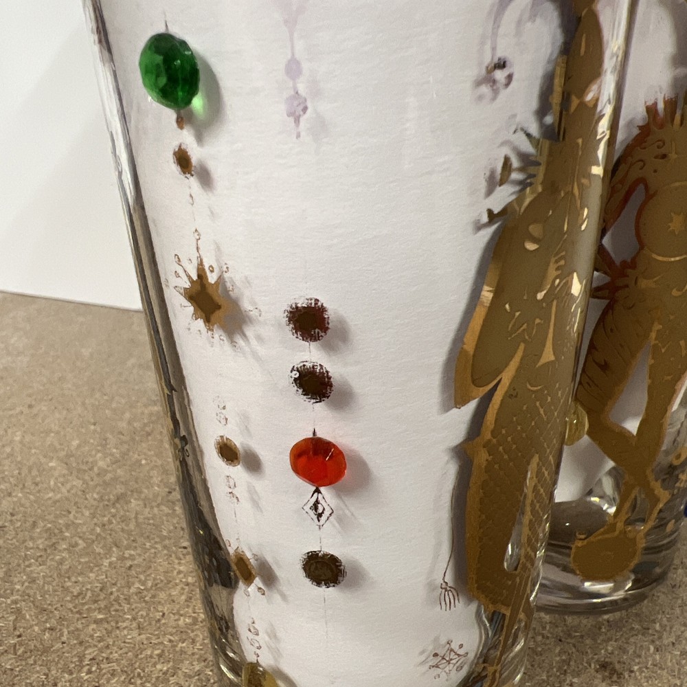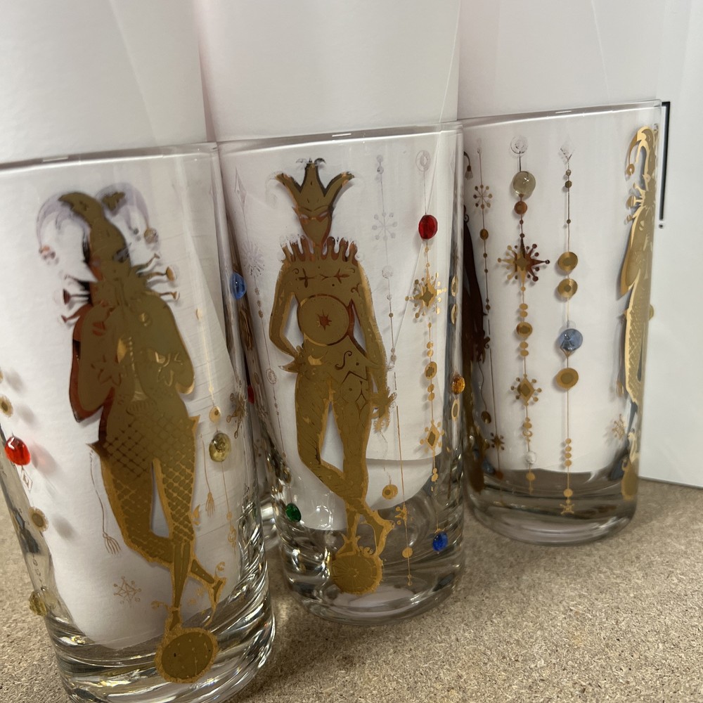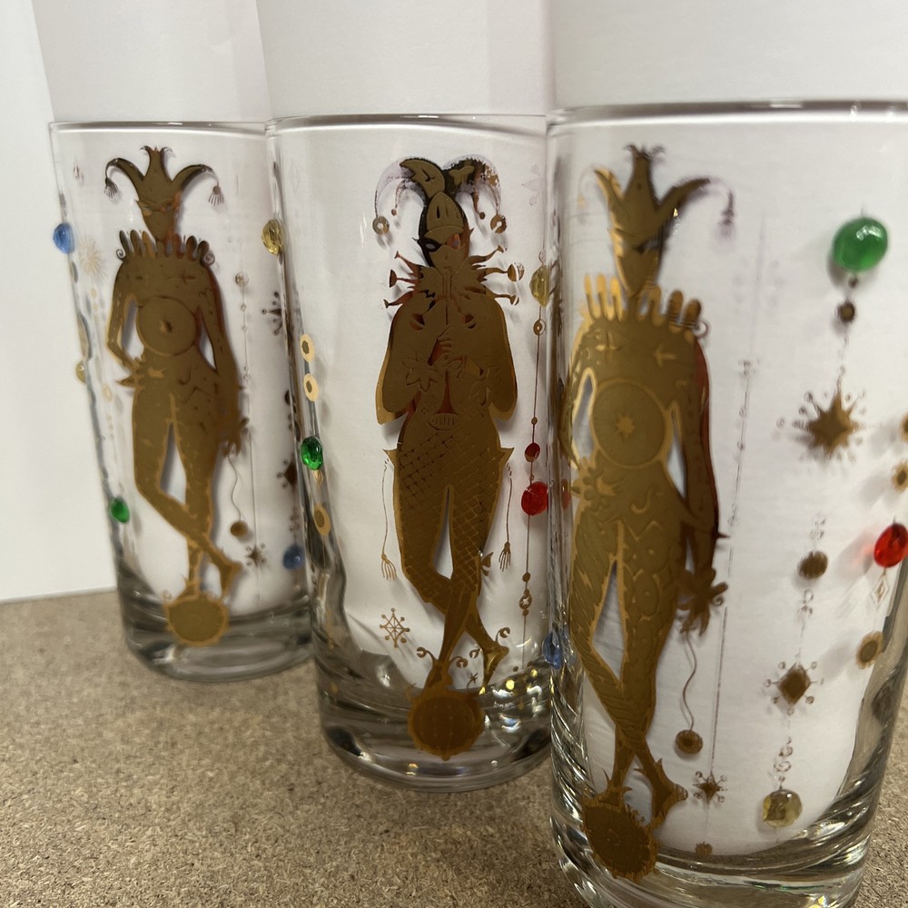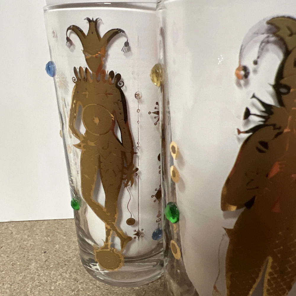 6 CULVER 1960’s 22 KT HARLEQUIN JESTER BEADED JEWELED TUMBLERS - VINTAGE. Condition is Used. Shipped with USPS Ground Advantage.