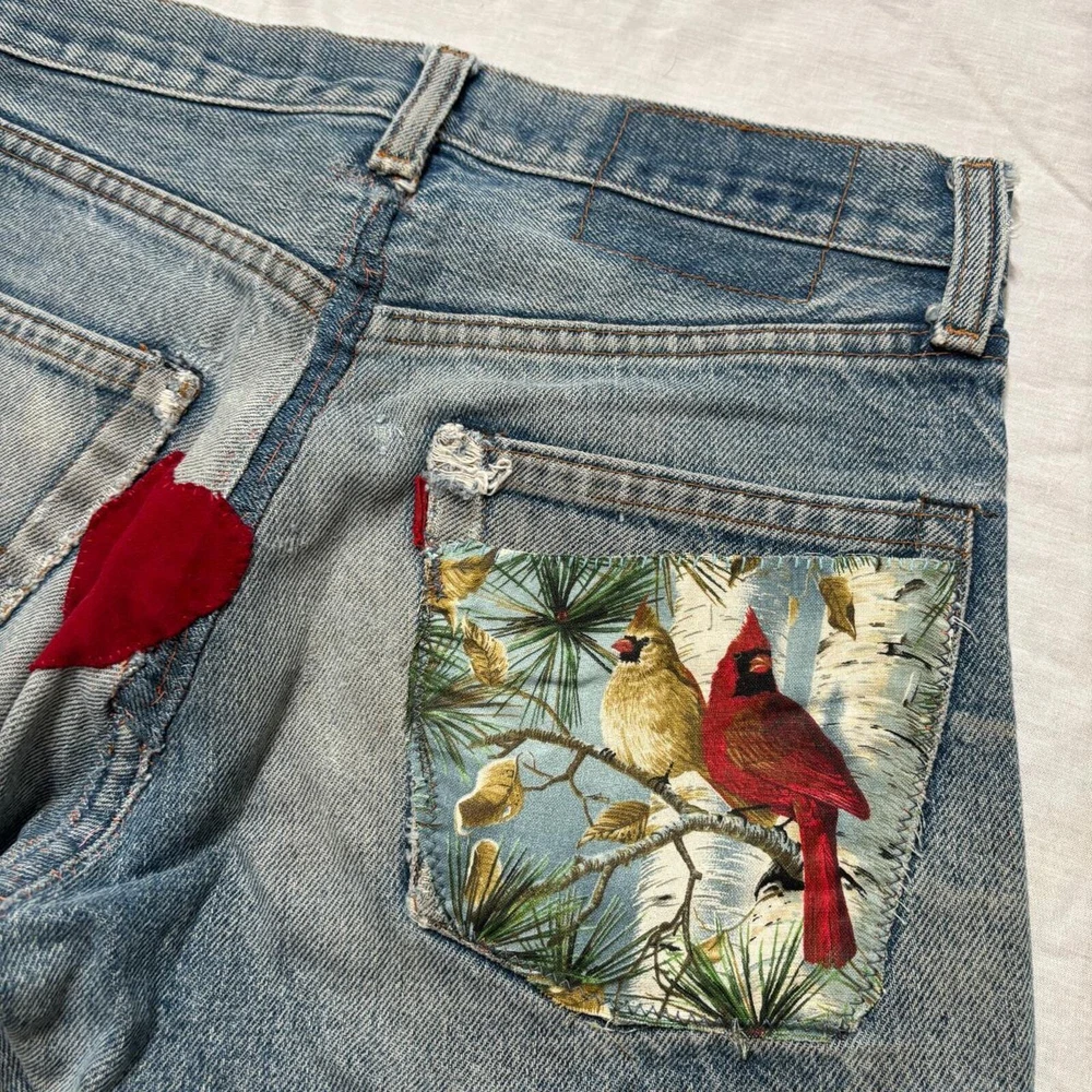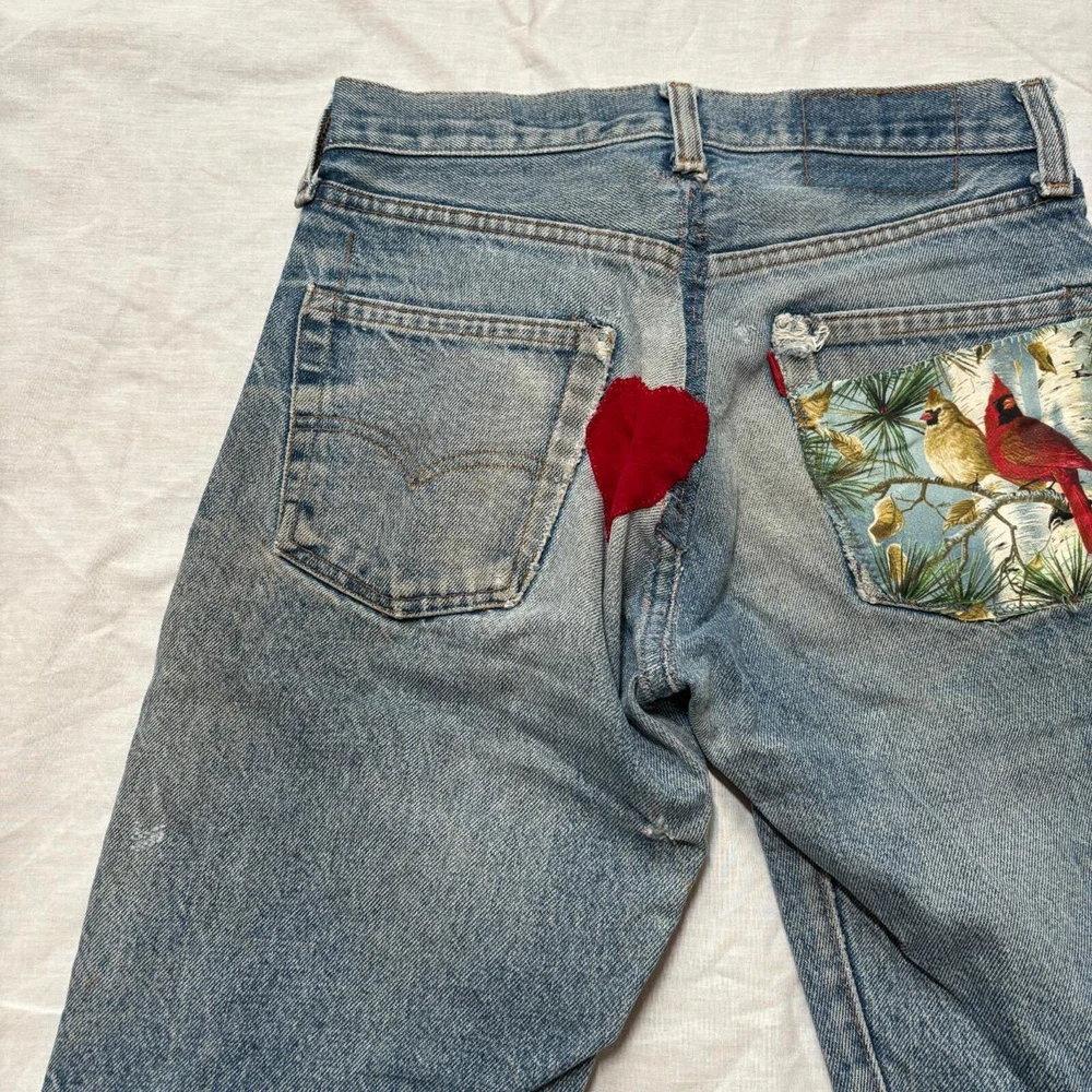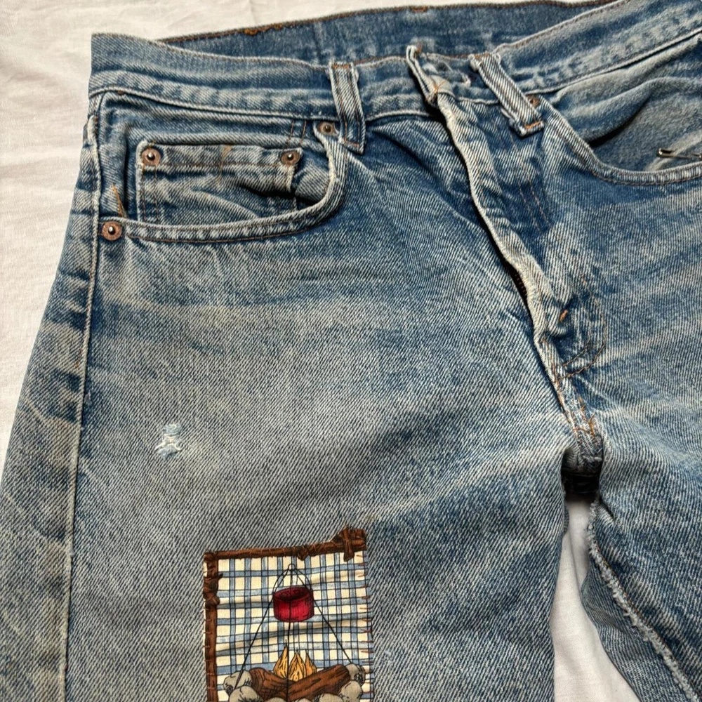 1960s-70s faded, distressed and patched up Levi's jeans Tags and back patch missing, looks like 505 style zipper fly straight leg Amazing fades and distressing, original patchwork job Measures 28x31, bundle for free shipping