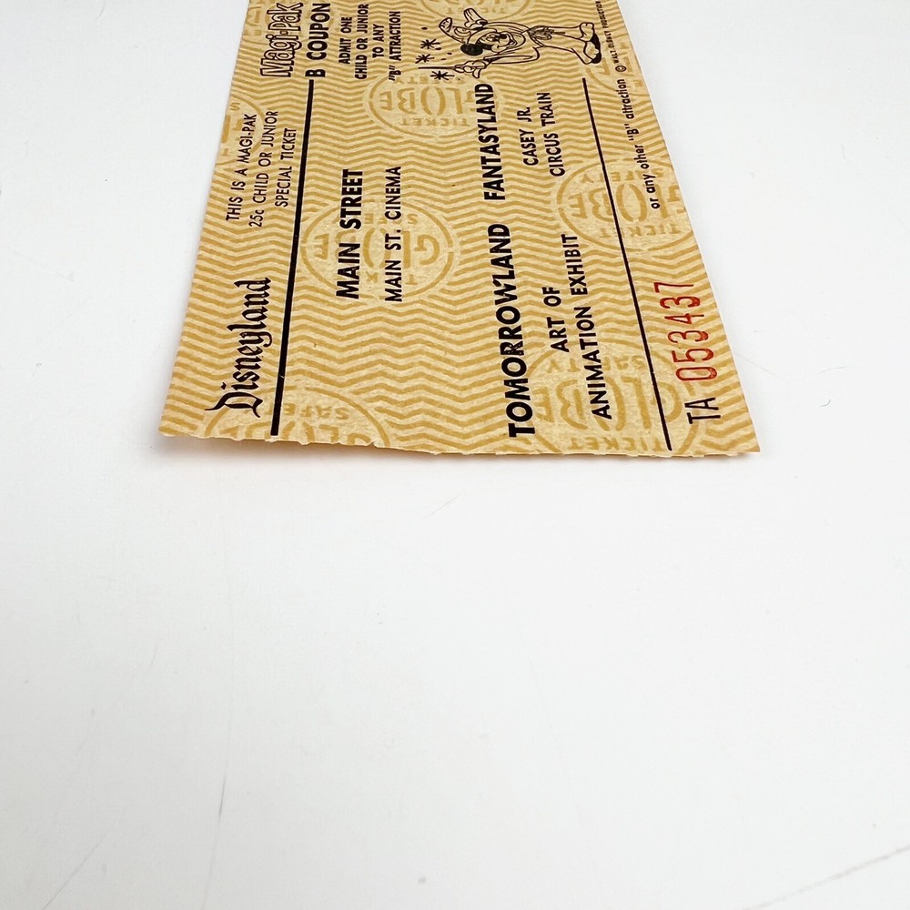 Vintage 1960s Disneyland Magi-Pak B Coupon Child Junior Swiss Casey Jr .25 cents. No apparent tears or stains. Slight lift on edges. Please see photos for proper details.