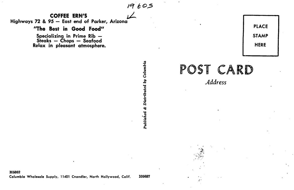 A Vintage printed hand colored postcard as described in title, additional info is below-Stains Publisher-photographer--Artist---Columbia card #----- H-5862