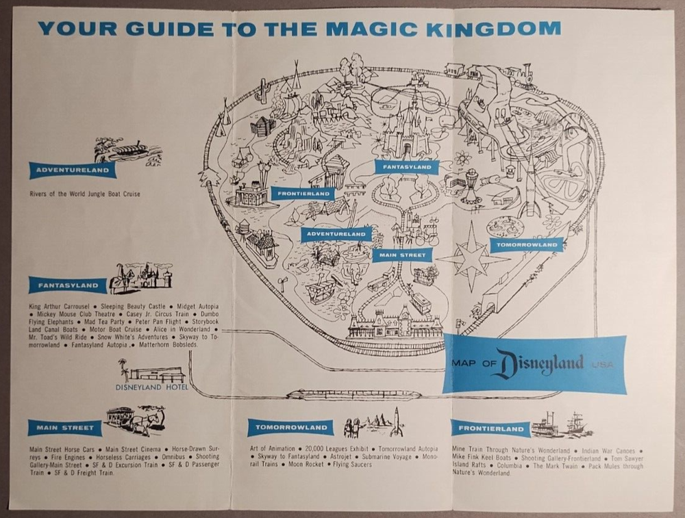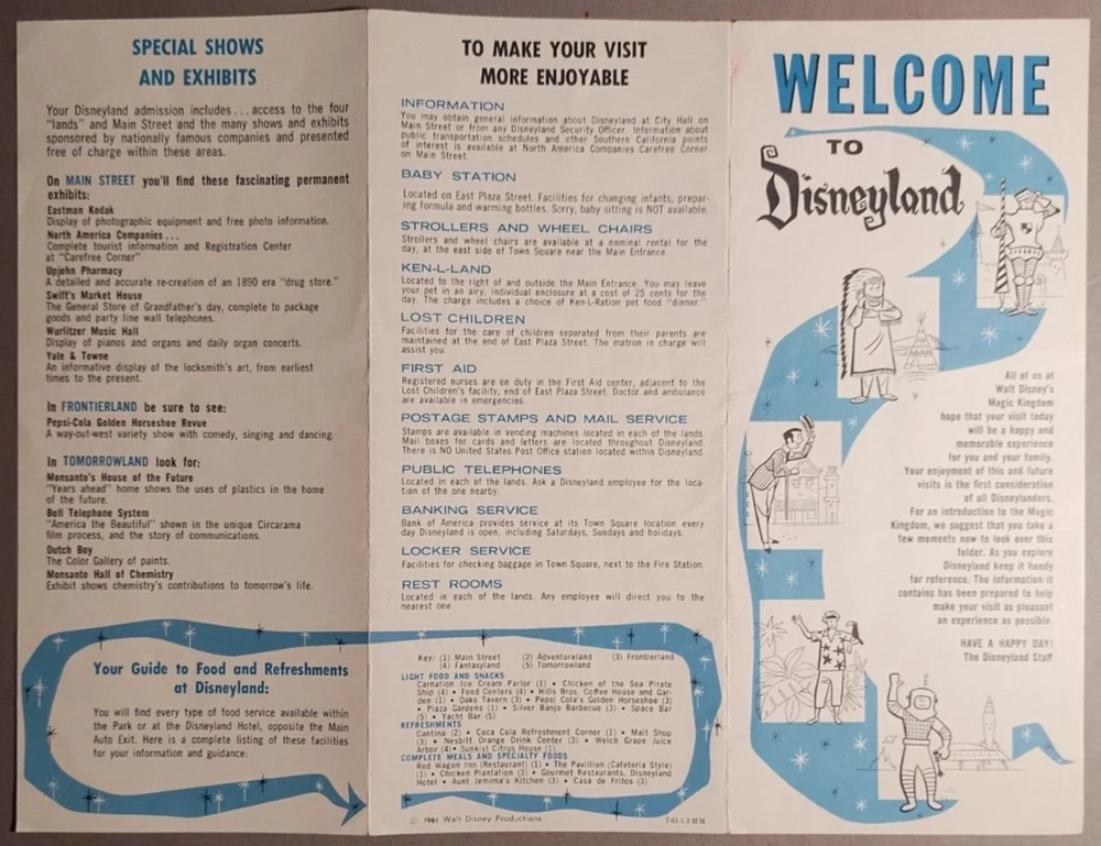 1961 Disneyland Red Wagon Inn Child's Menu, Brochure & Parking Pass . Menu(1960s) is approx 9-1/4" x 7-7/8. Brochure(1961) is 3-3/4" x 8-3/8". Ticket(1960s) is 5" x 2-5/8". See Images. Menu has tape on front from scrapbook & some minor wrinkling/creases from removal. Brochure has some light soiling. No folds, etc. Parking pass has two bends/creases & very small stain at bottom. B5-65 I started selling on here in 1998. I actively listed till around 2013. Then allowed the listings to die a slow death. Last sale was in 2021. After a 10+ year absence from listing on here due to burnout, I have decided to return. My accumulations of items have grown since I stopped listing. I have in excess of 50000 items to list. 90+ percent of it is ephemera and paper items. I do NOT sell reprints or reproductions. I always combine shipping either by refunding excess shipping or sending invoice with adjust shipping if you choose not to pay first.