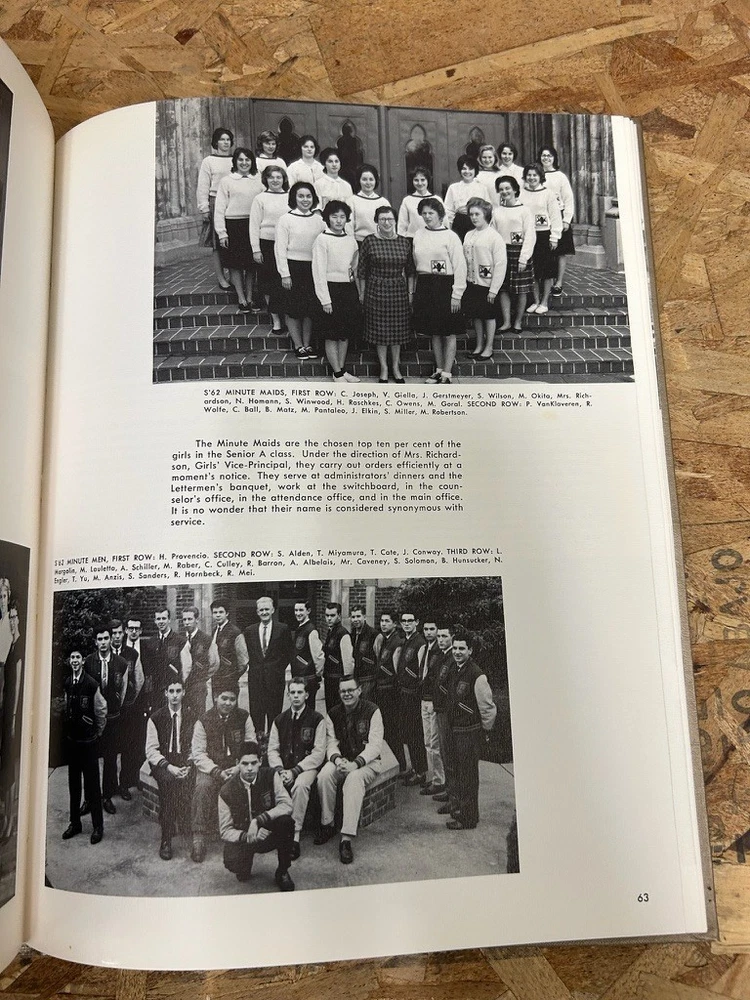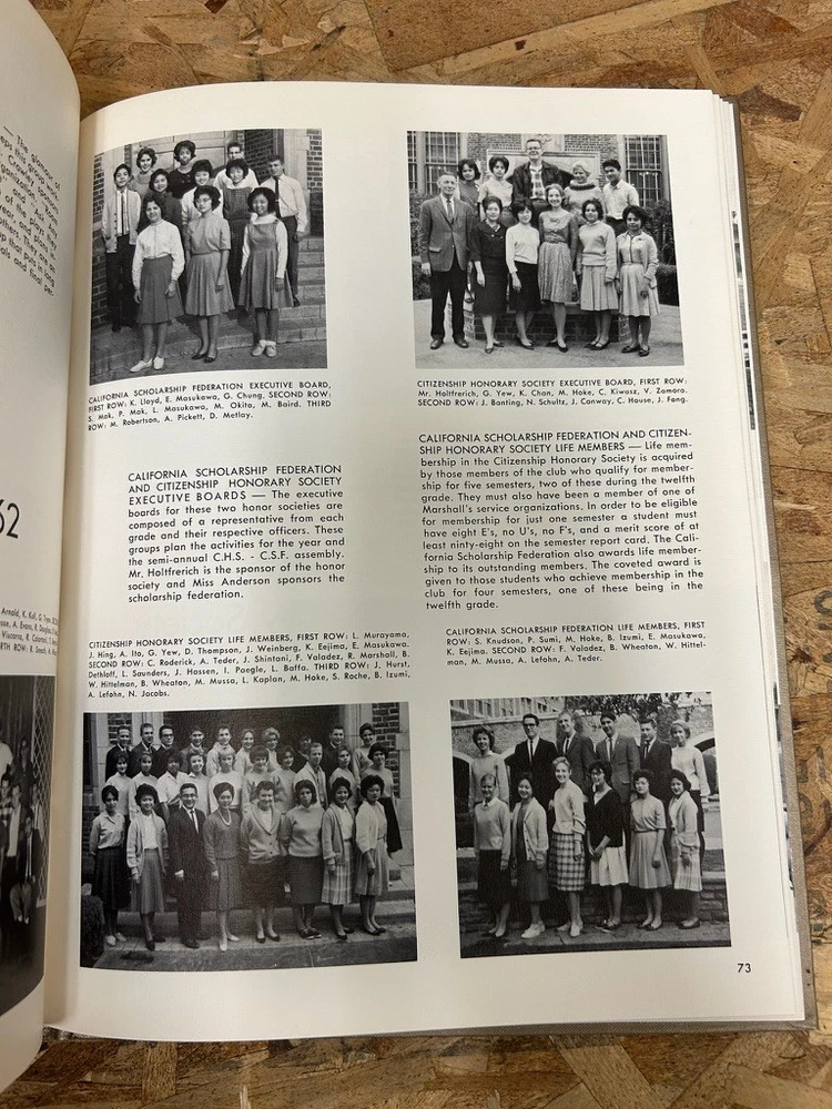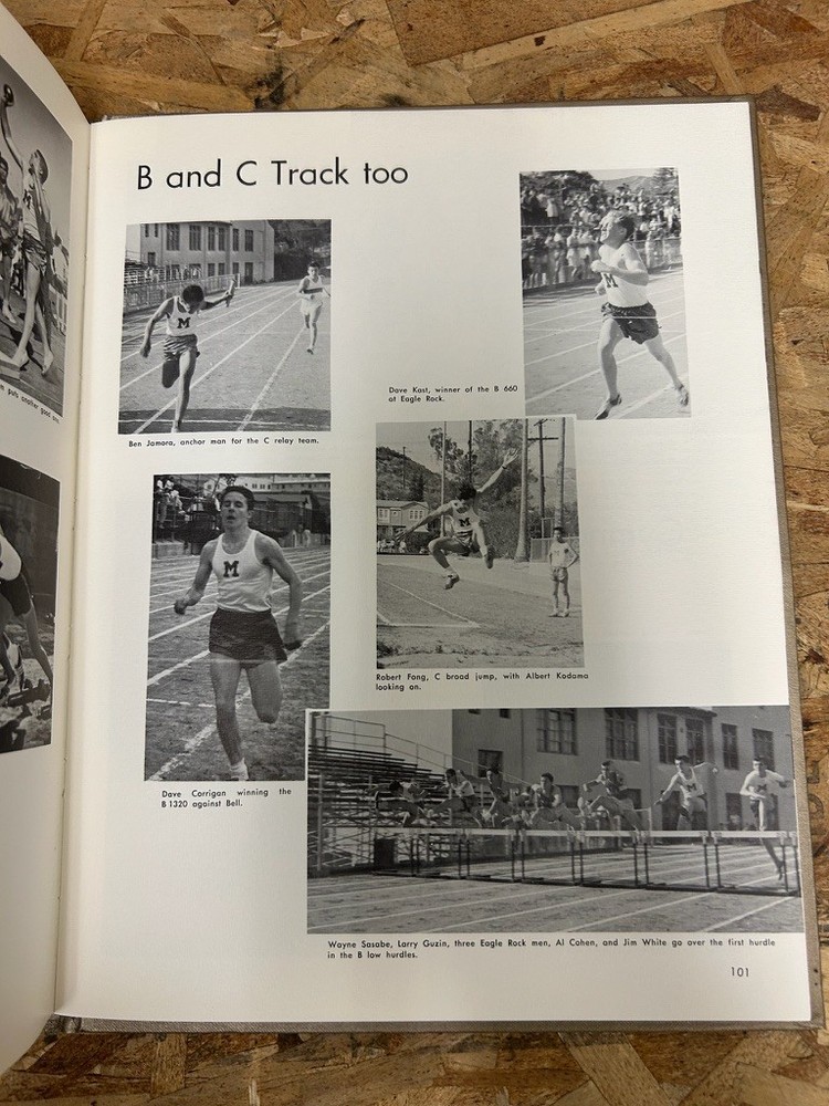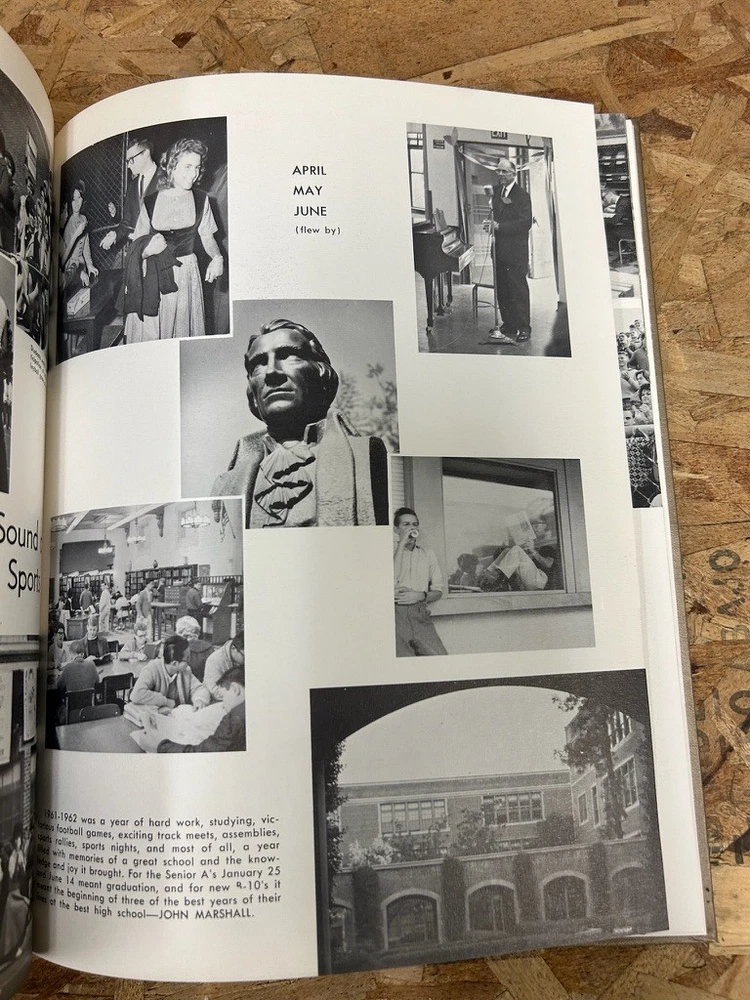 The product is a vintage 1962 John Marshall High School yearbook from Los Angeles, California. This original yearbook features various aspects of Marshall High School life, including sports teams and activities. With a vintage feel and being a piece of sports memorabilia, this yearbook is a unique and nostalgic collectible for fans and alumni of the school.