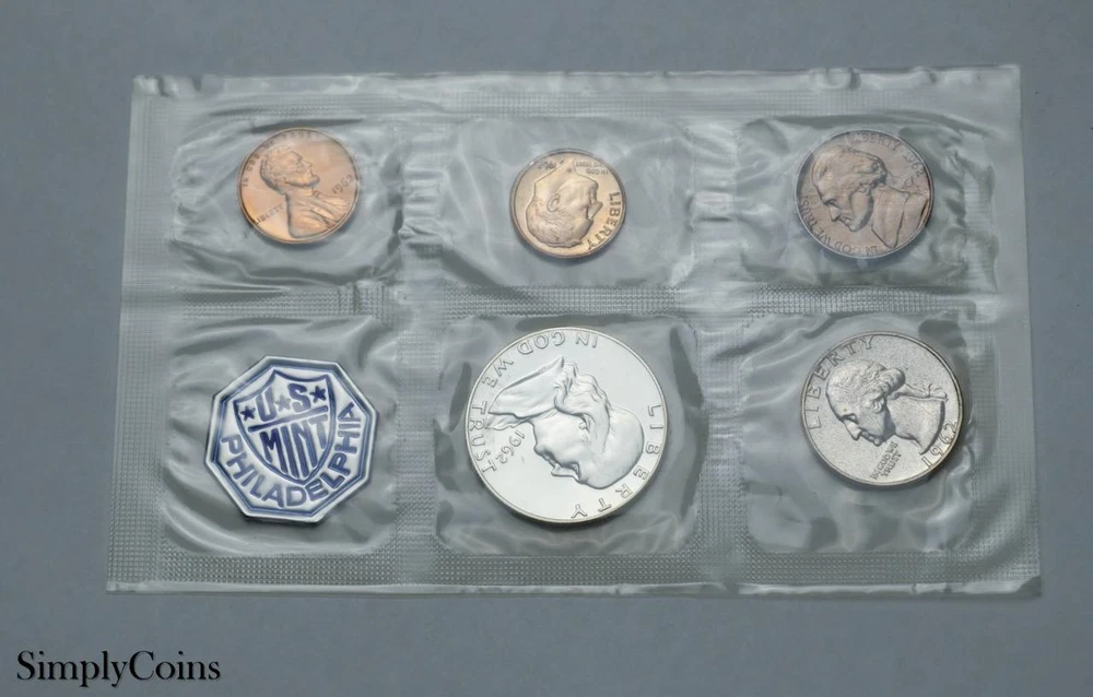 1962 Proof Set US Mint 90% Silver Coin Lot Original Envelope COA 1962 Proof Set US Mint 90% Silver Coin Lot Original Envelope COA Click images to enlarge Description You will receive a 1962 Proof Set with its Original Envelope and Original COA. You will receive the exact coins you see pictured. This set includes the following (5) coins. (1) 1962 Franklin Half Dollar Proof Uncirculated 90% Silver (1) 1962 Washinton Quarter Proof Uncirculated 90% Silver (1) 1962 Roosevelt Dime Proof Uncirculated 90% Silver (1) 1962 Jefferson Nickel Proof Uncirculated (1) 1962 Lincoln Memorial Penny Proof Uncirculated 100% Satisfaction Guaranteed! We offer a 100% Satisfaction Guarantee which means you can always return anything you purchase from Simply Coins regardless of the reason. This allows our customers to take a closer look at each and every coin to decide if the quality meets their standards. We will even pay for the return shipping back to us so we make it 100% RISK FREE! Payment We accept PayPal and Credit Cards Shipping Flat shipping rate of $3.95 no matter how many items you order! All additional combined items SHIP FREE as long as it is all in one payment You may take up to 7 days to pay for a combined order Every order comes with a tracking number USPS Ground Advantage (2-5 Days) Priority Mail (2-3 Days) Terms of Sale 100% Satisfaction Guaranteed! We offer a 100% Satisfaction Guarantee which means you can always return anything you purchase from Simply Coins regardless of the reason. This allows our customers to take a closer look at each and every coin to decide if the quality meets their standards. We will even pay for the return shipping back to us so we make it 100% RISK FREE! Pictures sell! Auctiva offers Free Image Hosting and Editing. 300+ Listing Templates! Auctiva gets you noticed! The complete eBay Selling Solution. Track Page Views With Auctiva's Counter