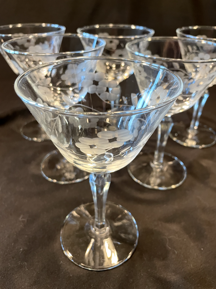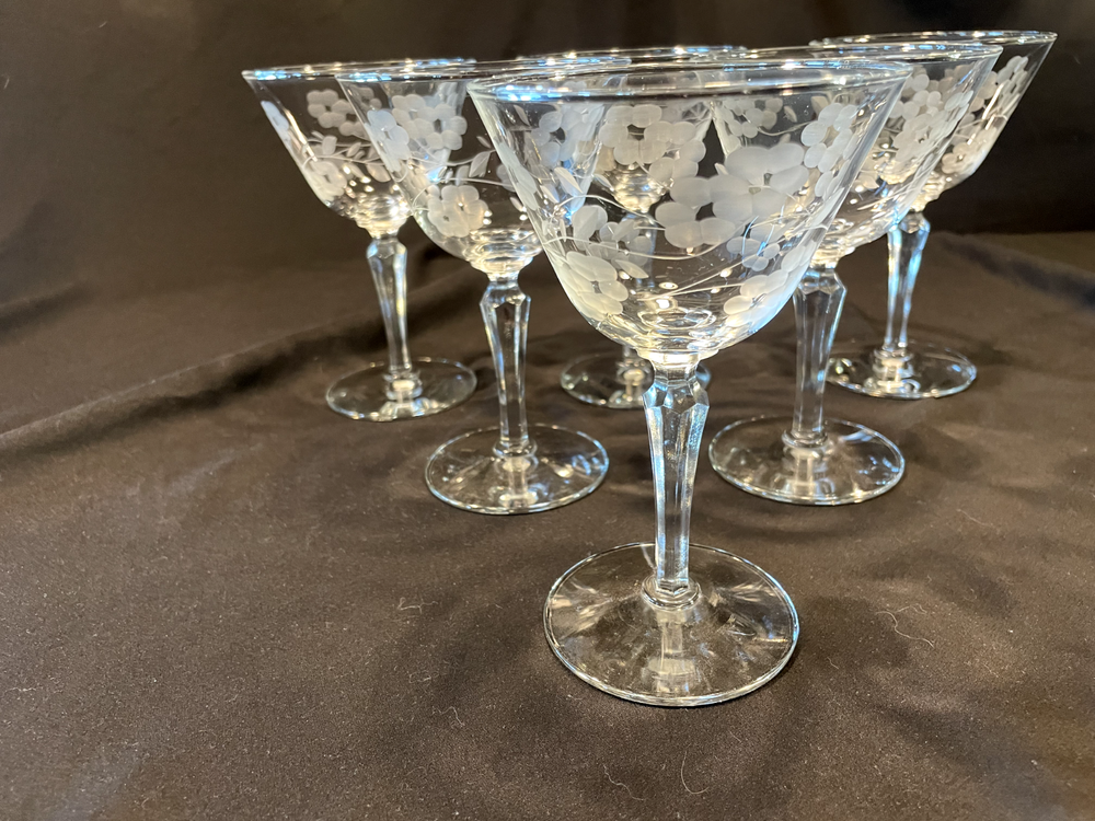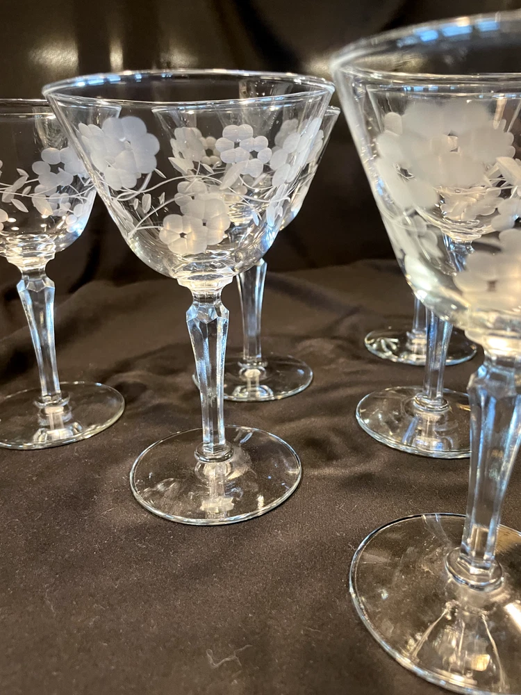 Occasion: All Occasions Pattern: Etched Patterns Production Style: Elegant Glass Department: Unisex Adults Handmade: No Time Period Manufactured: 1960-1969 Year Manufactured: 1962 Color: Clear Brand: Libbey Vintage: Yes Features: Etched Type: Champagne Glass Material: Glass Production Technique: Hand Blown Glass Country/Region of Manufacture: United States Original/Licensed Reproduction: Original