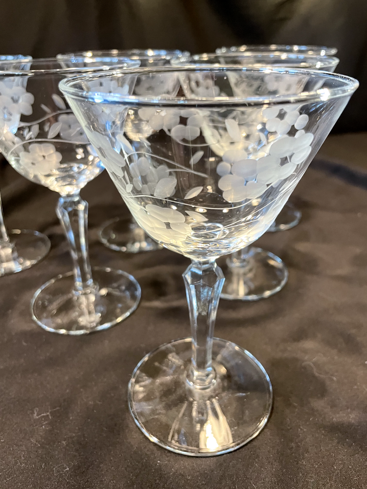 1962 Vintage Libbey Glass Glenmore Etched Champagne Sherbet 6 Inch Tall