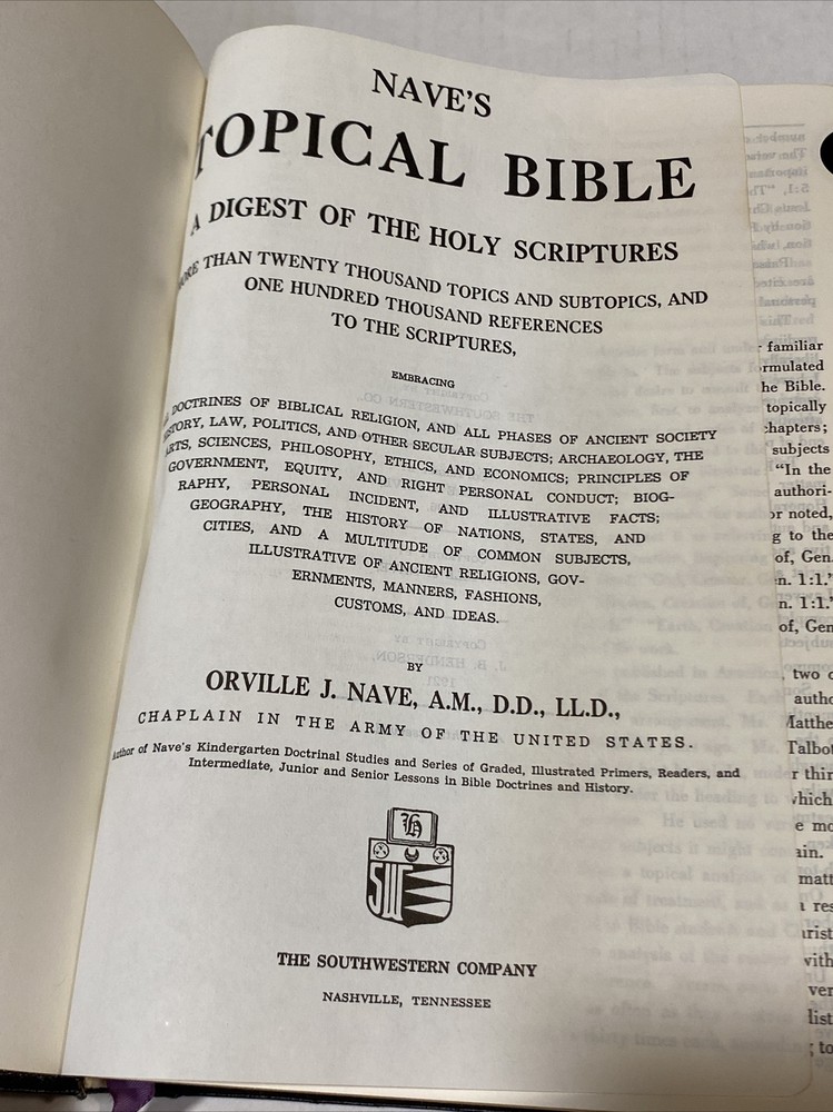 Vintage NAVE'S TOPICAL BIBLE Digest of Holy Scripture (Southwestern 1962) Tabs. Shows some/little signs of age. Good condition.