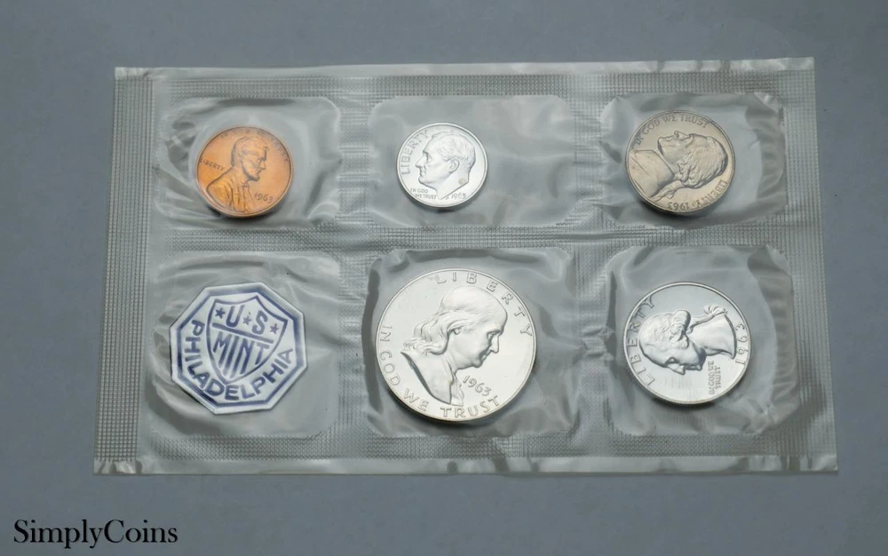 1963 Proof Set US Mint 90% Silver Coin Lot Original Envelope COA 1963 Proof Set US Mint 90% Silver Coin Lot Original Envelope COA Click images to enlarge Description You will receive a 1963 Proof Set with its Original Envelope and Original COA. You will receive the exact coins you see pictured. This set includes the following (5) coins. (1) 1963 Franklin Half Dollar Proof Uncirculated 90% Silver (1) 1963 Washinton Quarter Proof Uncirculated 90% Silver (1) 1963 Roosevelt Dime Proof Uncirculated 90% Silver (1) 1963 Jefferson Nickel Proof Uncirculated (1) 1963 Lincoln Memorial Penny Proof Uncirculated 100% Satisfaction Guaranteed! We offer a 100% Satisfaction Guarantee which means you can always return anything you purchase from Simply Coins regardless of the reason. This allows our customers to take a closer look at each and every coin to decide if the quality meets their standards. We will even pay for the return shipping back to us so we make it 100% RISK FREE! Payment We accept PayPal and Credit Cards Shipping Flat shipping rate of $3.95 no matter how many items you order! All additional combined items SHIP FREE as long as it is all in one payment You may take up to 7 days to pay for a combined order Every order comes with a tracking number USPS Ground Advantage (2-5 Days) Priority Mail (2-3 Days) Terms of Sale 100% Satisfaction Guaranteed! We offer a 100% Satisfaction Guarantee which means you can always return anything you purchase from Simply Coins regardless of the reason. This allows our customers to take a closer look at each and every coin to decide if the quality meets their standards. We will even pay for the return shipping back to us so we make it 100% RISK FREE! Images sell! Get Supersized Images & Free Image Hosting Create your brand with Auctiva's Customizable Templates. Attention Sellers - Get Templates Image Hosting, Scheduling at Auctiva.com. Track Page Views With Auctiva's Counter
