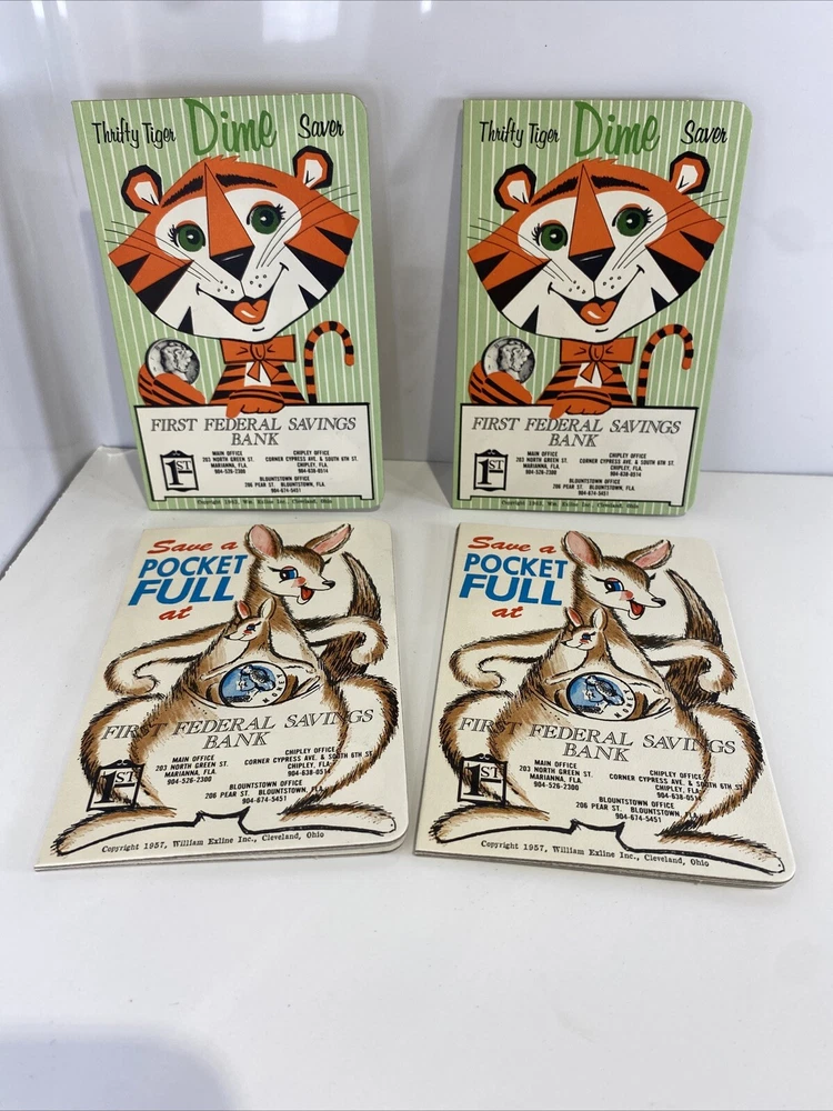 This vintage Thrifty Tiger quarter saver coin book from 1964 is a must-have for any collector of bank and insurance memorabilia. The book features a colorful orange design and includes a 1957 save a pocket full coin from Marianna, FL. It is a great addition to any historical collection and a unique piece of American history. The coin book is unmodified and not signed, making it a rare find for collectors who value authenticity. 1964 Thrifty Tiger Quarter Saver Coin Book 1957 Save A Pocket Full VTG Banking Fast Shipping