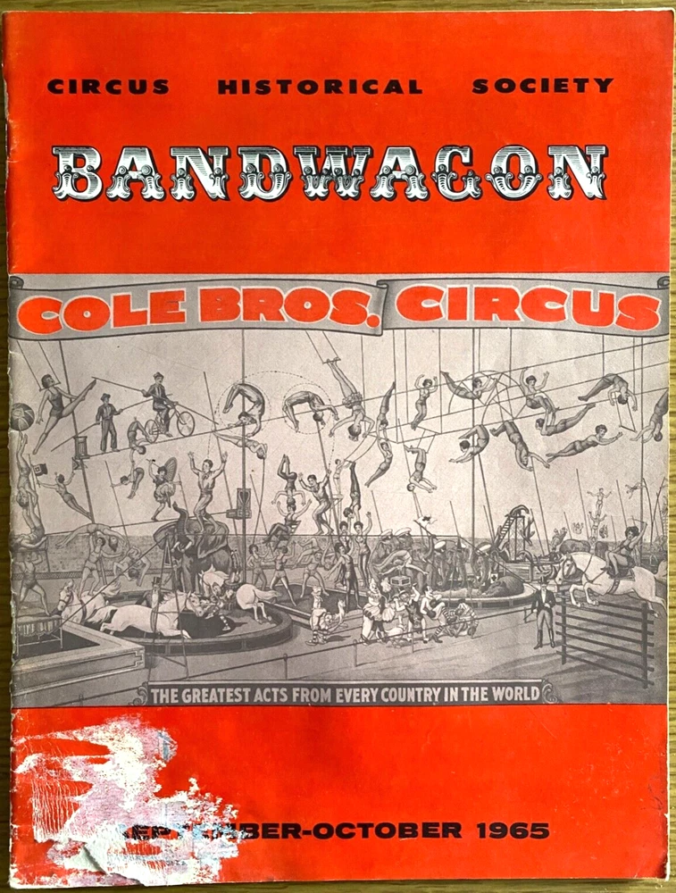 Bandwagon Circus Historical Society Vintage pictorial magazine Sept./Oct. 1965 Details the history of the Big Top Circus with photographs, illustrations and articles Size is 8" x 10.5" inches – 28 pages ______________________________ Please wait for combined invoice before paying Visit our store for 2,000+ items – Thank You!