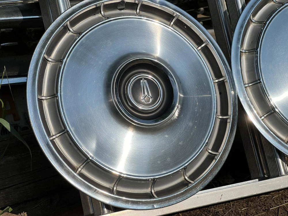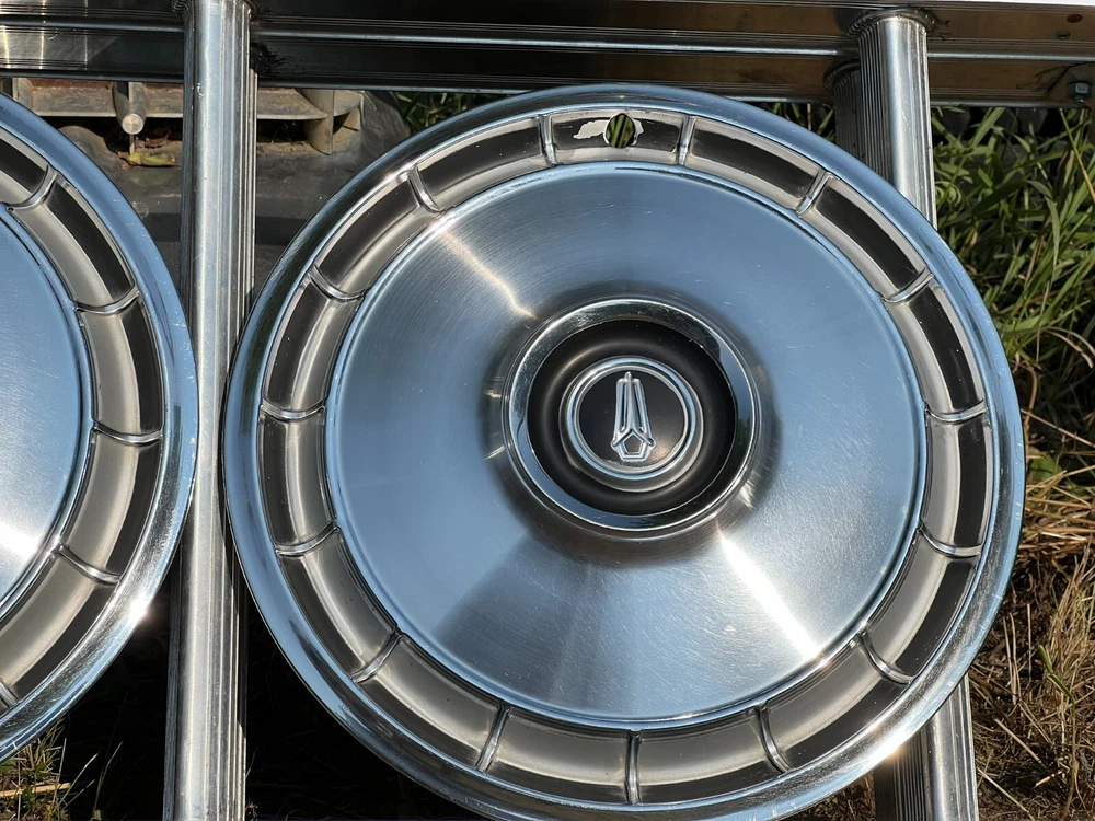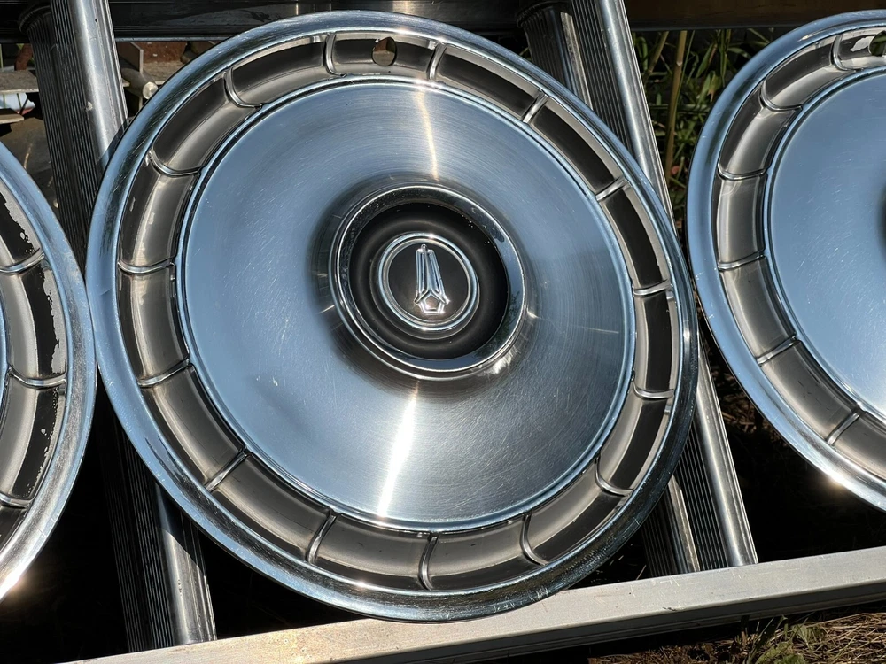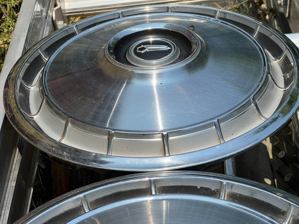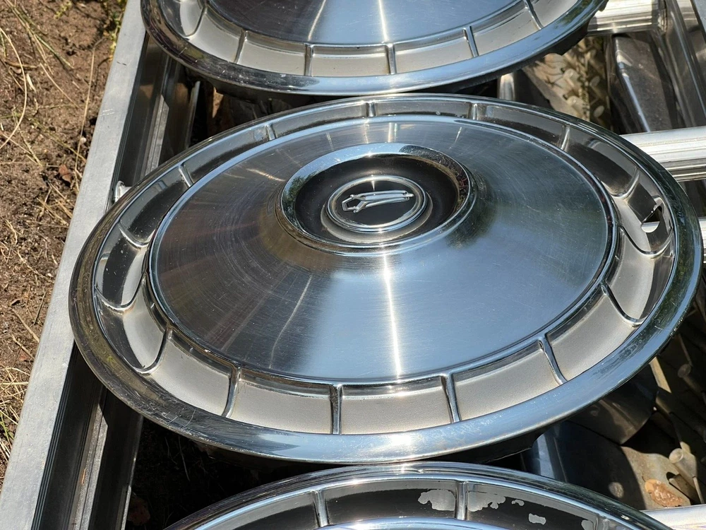 SET OF FOUR MOPAR HUBCAPS. NICE USED CONDITION. MINOR BLEMISHES. USE CLOSEUP VIEWER TO BEST DETERMINE CONDITION