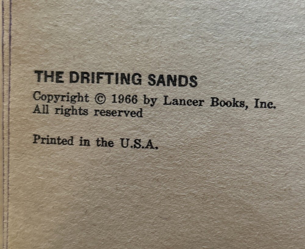 Experience the thrill of adventure with "The Drifting Sands Lancer Books 1966". This collectible piece is a must-have for any book enthusiast who appreciates the art of storytelling. Immerse yourself in the tales of bravery and courage as you flip through the pages of this antique book. With its unique design and intricate details, this book is a rare find that will make a great addition to any collection. The pages are filled with captivating stories that will take you on a journey through time and space. Don't miss out on the chance to own this timeless piece of literature.