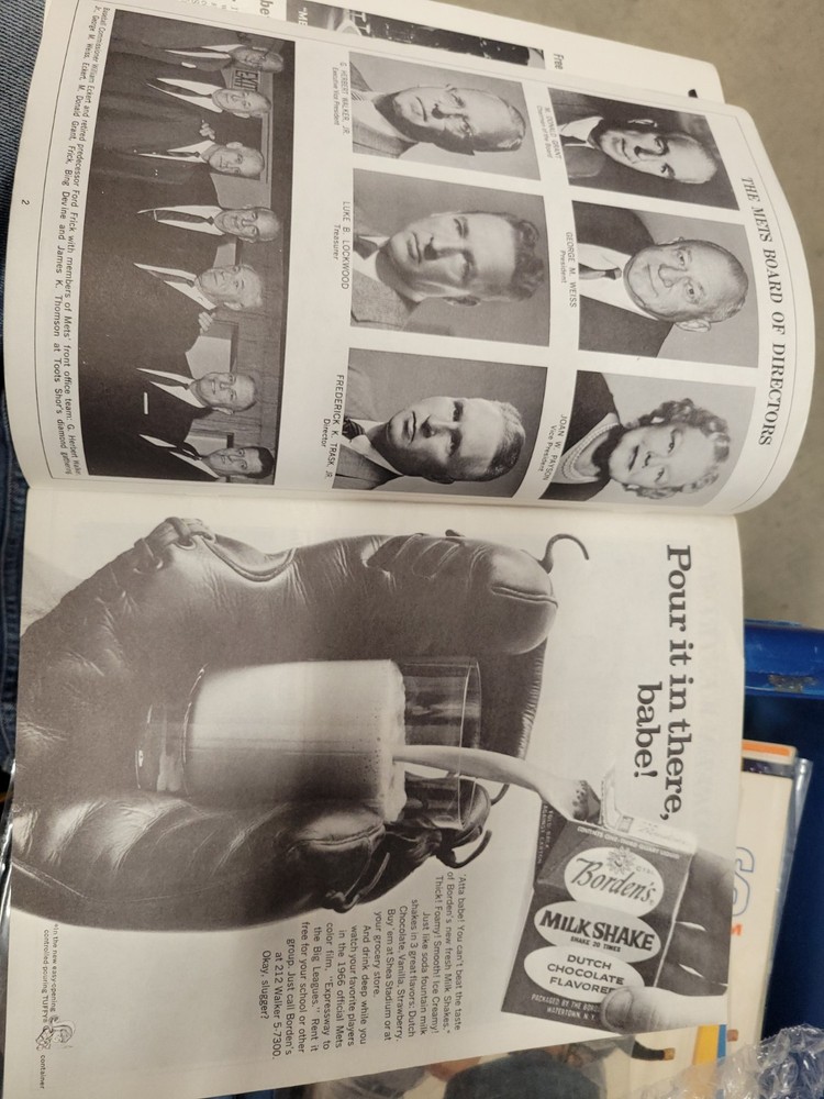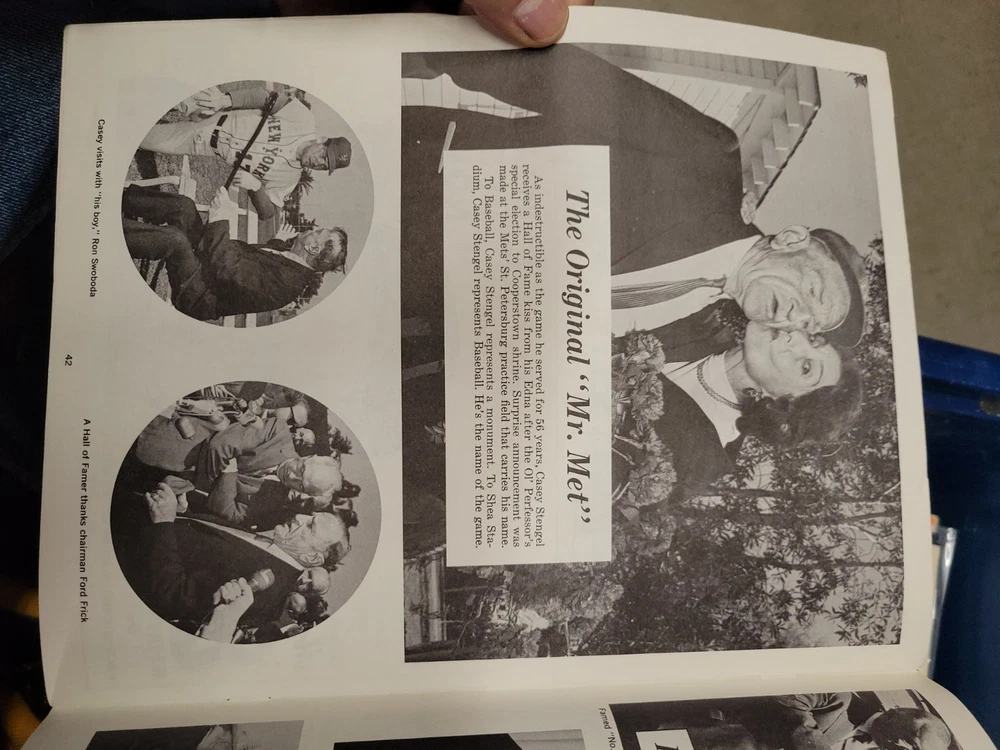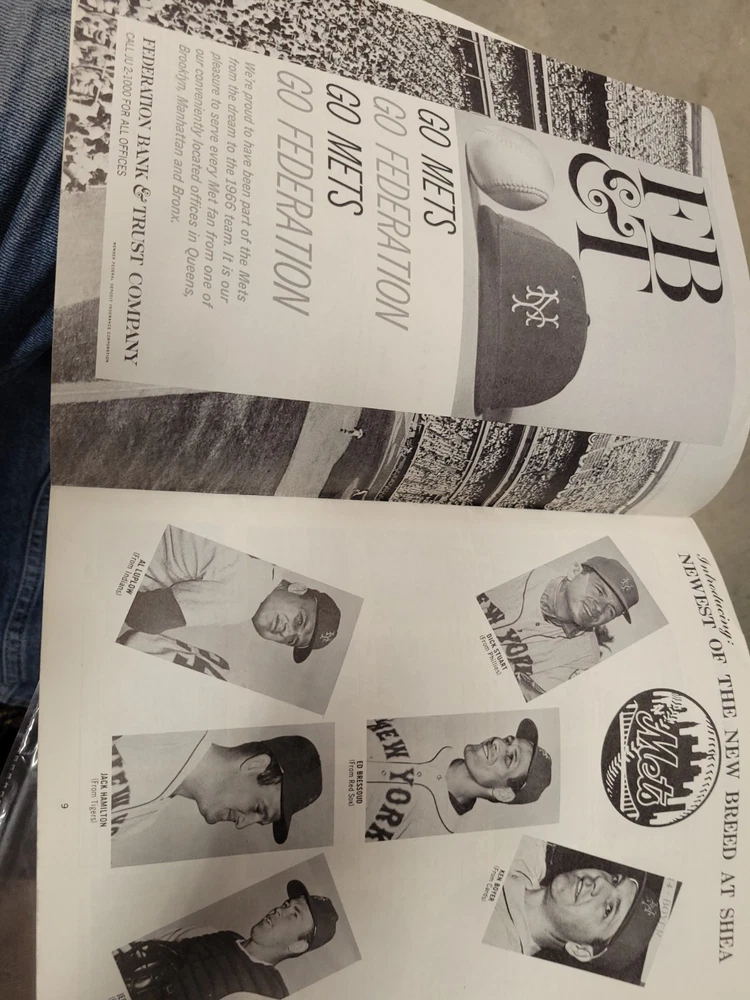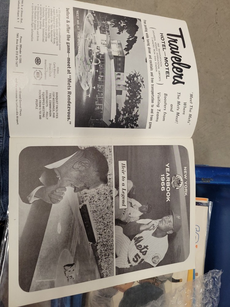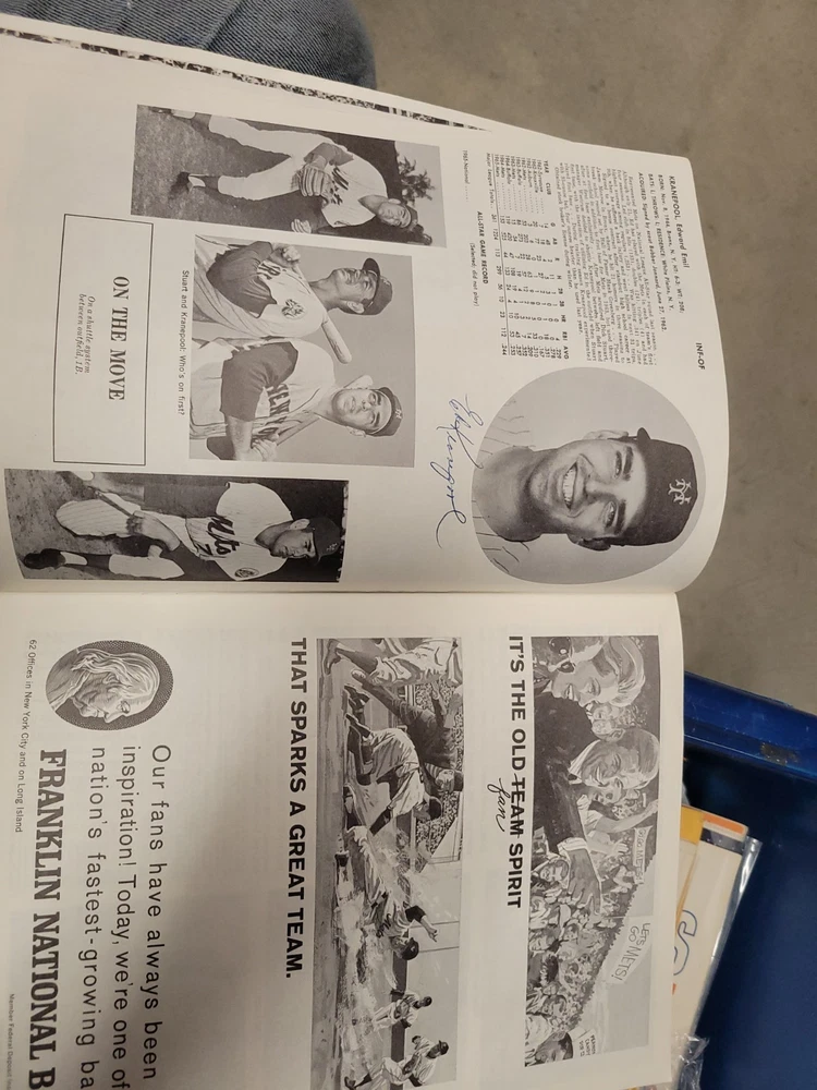 The product is a 1966 New York Mets yearbook that is signed by players including Jones, Swoboda, and Rockie. This vintage sports memorabilia item is an original publication licensed by the team and features a nostalgic look at the baseball team from that era. Perfect for collectors or fans of the New York Mets, this unique piece offers a glimpse into the history of the team and the players who signed it.