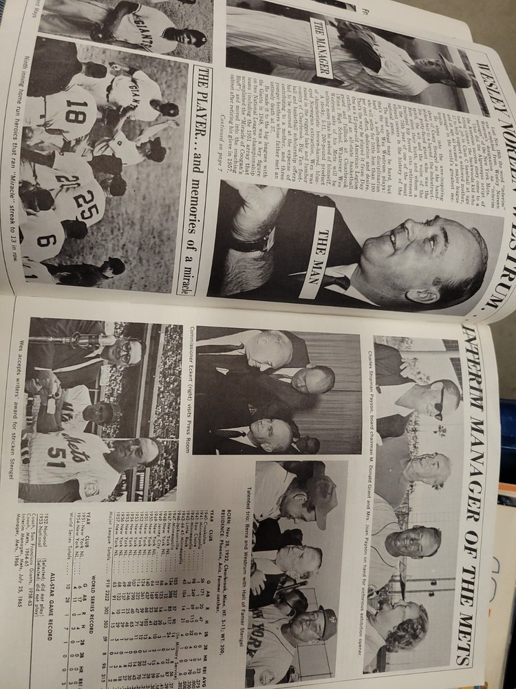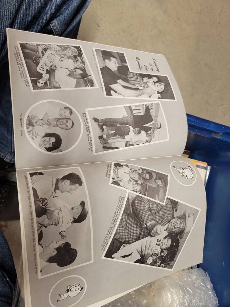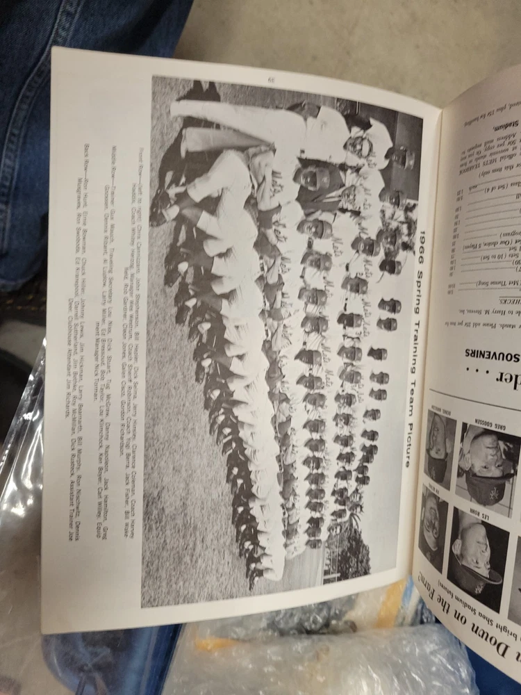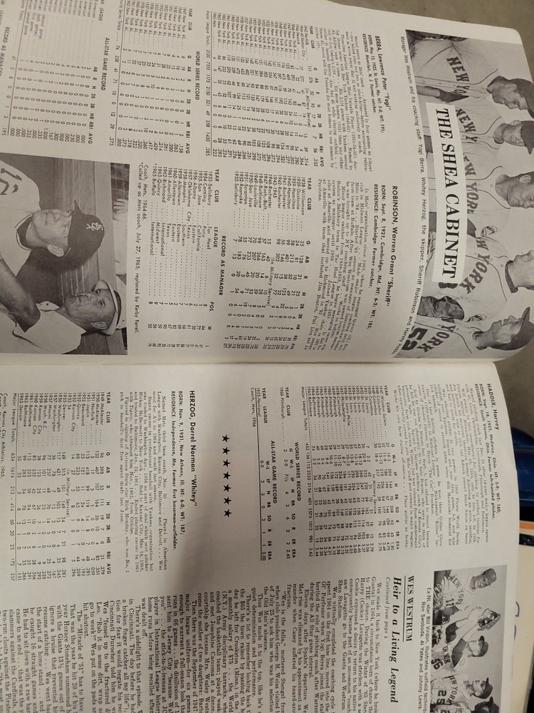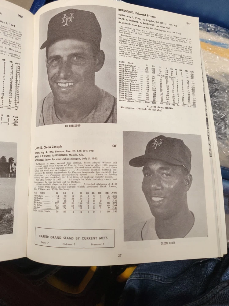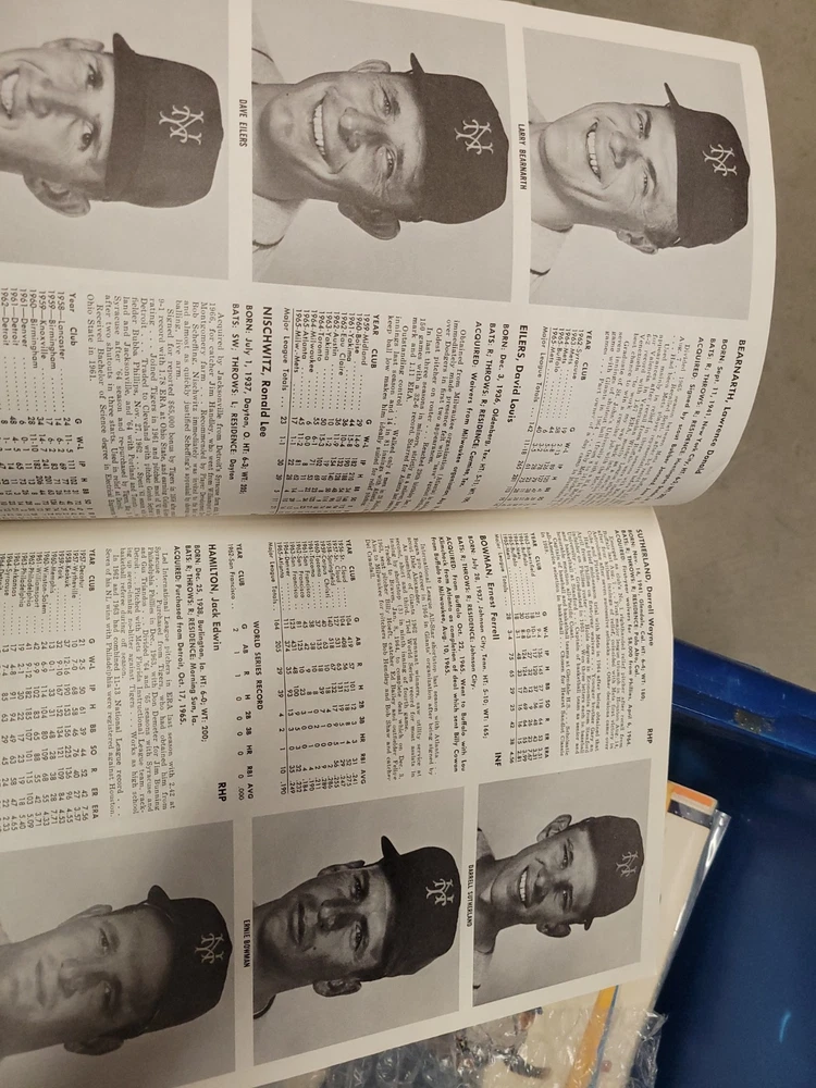The product is a 1966 New York Mets yearbook that is signed by players including Jones, Swoboda, and Rockie. This vintage sports memorabilia item is an original publication licensed by the team and features a nostalgic look at the baseball team from that era. Perfect for collectors or fans of the New York Mets, this unique piece offers a glimpse into the history of the team and the players who signed it.