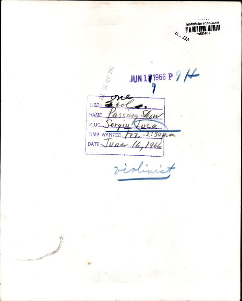 ebay template Note: Please study the images carefully to determine the condition of this vintage photograph, as it may not be in perfect condition. It may contain wrinkles, cracks, and possibly even tears due to its age and how it was handled before it got to us. A scanner may interpret colors and contrast differently than human eyes will, so it is possible that the actual photograph may be slightly darker or lighter in person. This vintage photograph is offered for sale as a collectible item and conveys no transfer of copyright. 1966 Press Photo Violinist Sergiu Luca - lra80487 This is an original press photo. Sergiu Luca, violinist - passing show.Photo measures 8.25 x 10.25inches. Photo is dated 06-16-1966. PHOTO FRONT PHOTO BACK Historic Images Part Number: lra80487 FAQs Q: Can I just download a digital version instead? A: No, we sell only vintage originals and do not make or distribute any copies, including digital ones. Q: Do you combine shipping and invoices? A: Multiple photos won on the same seller ID combine automatically through the eBay checkout process. If you encounter problems with this, send us a message via eBay messaging and we will send you an invoice. Due to eBay limitations, we cannot combine items won on our different seller IDs for a single shipping charge. Q: How quickly do you ship the items once paid? A: We ship within one business day after your payment clears. If you do not receive an "order shipped" email from us by the close of the second business day from submitting payment, please e-mail us via eBay messaging. Q: How do you make sure my photograph arrives safely? A: We package each order between two cross-corrugated pieces of cardboard to ensure that the package is as difficult to bend as possible. We then wrap each order in a plastic sheet to help protect against moisture. We want you to rest assured that we take every precaution to ensure that the photograph you receive will be in the same condition in your care as it was in ours. Q: Will the "Historic Images" watermark be on my photo when I receive it? A: No. This is a digital watermark we use to protect our images. It is not printed on the photo. Q: What are your office hours? A: eBay for us is a business, and a very fun one to be in! We are open M-F 9 to 5 (CST). Therefore, we do not return e-mails and phone calls over the weekend. We observe the following holidays: New Years Day, Memorial Day, Fourth of July, Labor Day, Thanksgiving and the day after Thanksgiving, Christmas Eve and Christmas Day. Q: Where did all these vintage photos come from? A: These original vintage photographs are from various news service and newspaper photo archives from locations around the country including: Boston, Detroit, Tampa, Chicago, Denver, Seattle, New Orleans, Milwaukee, Portland, Spokane, and more. We do not copy or reproduce any photographs -- every item is a unique vintage piece that was housed in a news archive. Q: Can I use this photograph in my book/blog/website? A: The short answer is no. There is no transfer of copyright for republication or reproduction with these photographs when you purchase them, and only photographs taken before 1923 are currently automatically in the public domain. Permission from the copyright holder, which usually can be identified from the back of each photo, must be sought to republish or reproduce the image for any purpose. Q: Do you relist items (in case I miss an auction ending)? A: Auction items that receive no bids are relisted in our store (historicimages-store on eBay) as a fixed-price item and at a higher price than the starting auction price. Q: Do you leave feedback? A: Yes, we always leave feedback for buyers. Our software monitors when our buyers leave us feedback, then notifies us that we can leave feedback for the buyer. Rest assured, if you leave feedback, we will do the same! Check out our family of eBay IDs: historicimages01 Sports Photos historicimages02 Entertainment Photos historicimages03 Americana Photos historicimages04 International & War Photos historicimages05 Transportation Photos historicimages06 Photos of All Subjects historicimages07 Entertainment Photos historicimages08 Newsworthy Photos historicimages09 Entertainment Photos historicimages10 Sports Photos historicimages-store Our largest fixed-price selection historicimages-gallery Hand-picked photos Saturday night auctions About Us Historic Images was formed in September 2009, with a handful of scanners working out of a basement to digitize newspaper photo archives. We have since moved out of the basement, and we can now archive thousands of photos per day. Our company has worked with magazines and newspapers from Detroit, Boston, Denver, Seattle, Tampa, Chicago, and New Orleans, just to name a few. We are constantly adding to our inventory, and have assembled an archive of millions of photos to date. As our company evolved, we began our eBay business, which brings thousands of fresh auctions per week to the world's largest online auction marketplace. Our custom software systems and team of great employees allow us to efficiently scan and sell large photo archives online. At the very core of our company's DNA is a strong commitment to customer satisfaction and strict integrity for our product. Our promise to you is that we will do everything in our power to provide you a great buying experience. Copyright 2009 - Present, Historic Images, Inc. Sell Smarter with Kyozou. Inventory and Ecommerce Management