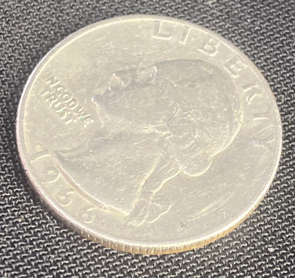 This 1966 Washington quarter is a great addition to any collection. The absence of a mint mark adds to its intrigue and mystery. The coin is ungraded, but appears to be in good shape. Its denomination is 25 cents and it was manufactured in the United States. The country/region of manufacture is clearly indicated on the coin. It is an circulated piece and has not been modified in any way. This rare coin is perfect for any collector or enthusiast of coins and paper money. Ungraded. Uncertified. In circulated condition. Some scratches/wear to coin. “Y” in Liberty almost rubbed off. No mint mark