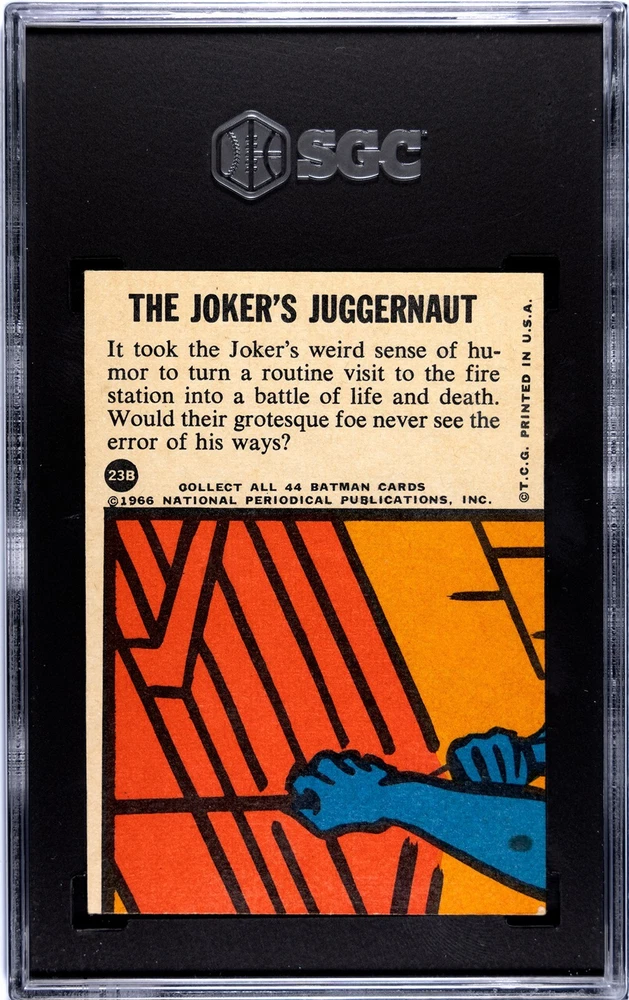 Fresh slab, Topps 1966 #23B Batman Blue-Bat Series B The Joker's Juggernaut graded from SGC in a 5 EX. Beautiful card. Always listening to reasonable offers. A good offer never hurt anybody. Kindly asking “what would you pay for it?” We might be on the same page...